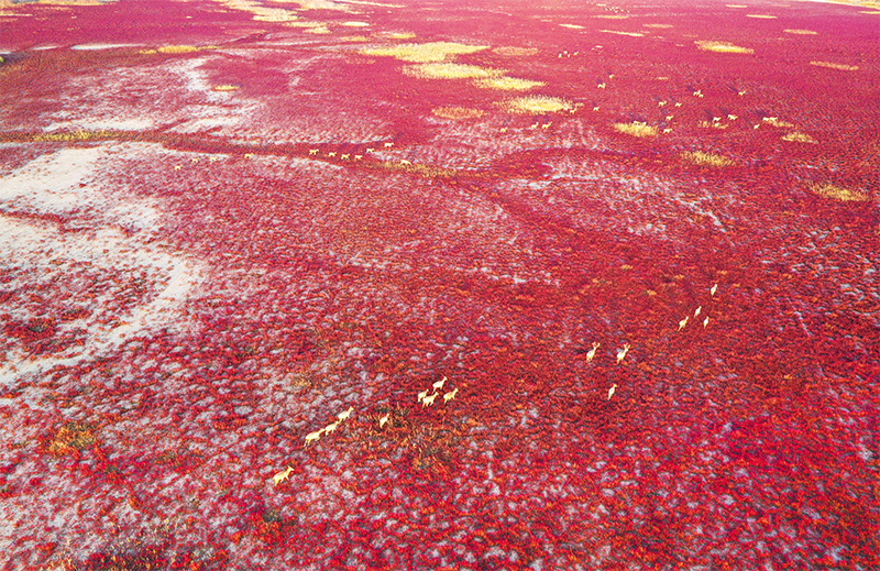 江蘇省鹽城市擁有582公里海岸線、76.97萬公頃濕地,孕育著太平洋西岸和亞洲大陸邊緣面積最大、生態(tài)保護最好的海岸型濕地。2019年,位于鹽城市的中國黃(渤)海候鳥棲息地(第一期)成功列入世界遺產(chǎn)名錄。圖為2022年11月9日,在鹽城東臺條子泥濕地拍攝的麋鹿(無人機照片)。 新華社記者 楊磊/攝