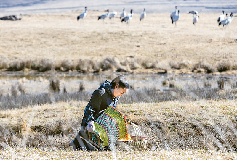 近年來,云南大山包黑頸鶴國家級自然保護區(qū)積極實施濕地保護與恢復(fù)、濕地生態(tài)效益補償、食物源基地建設(shè)等管護措施,使這里逐漸成為黑頸鶴在云貴高原上最重要的越冬棲息地和遷徙中轉(zhuǎn)站。圖為2022年12月11日,志愿護鶴員在大山包黑頸鶴國家級自然保護區(qū)準備給黑頸鶴投食。 新華社記者 曹夢瑤/攝
