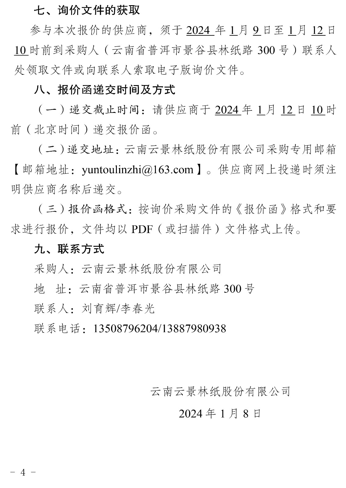 云南云景林紙股份有限公司2024年濾套代儲(chǔ)采購公告