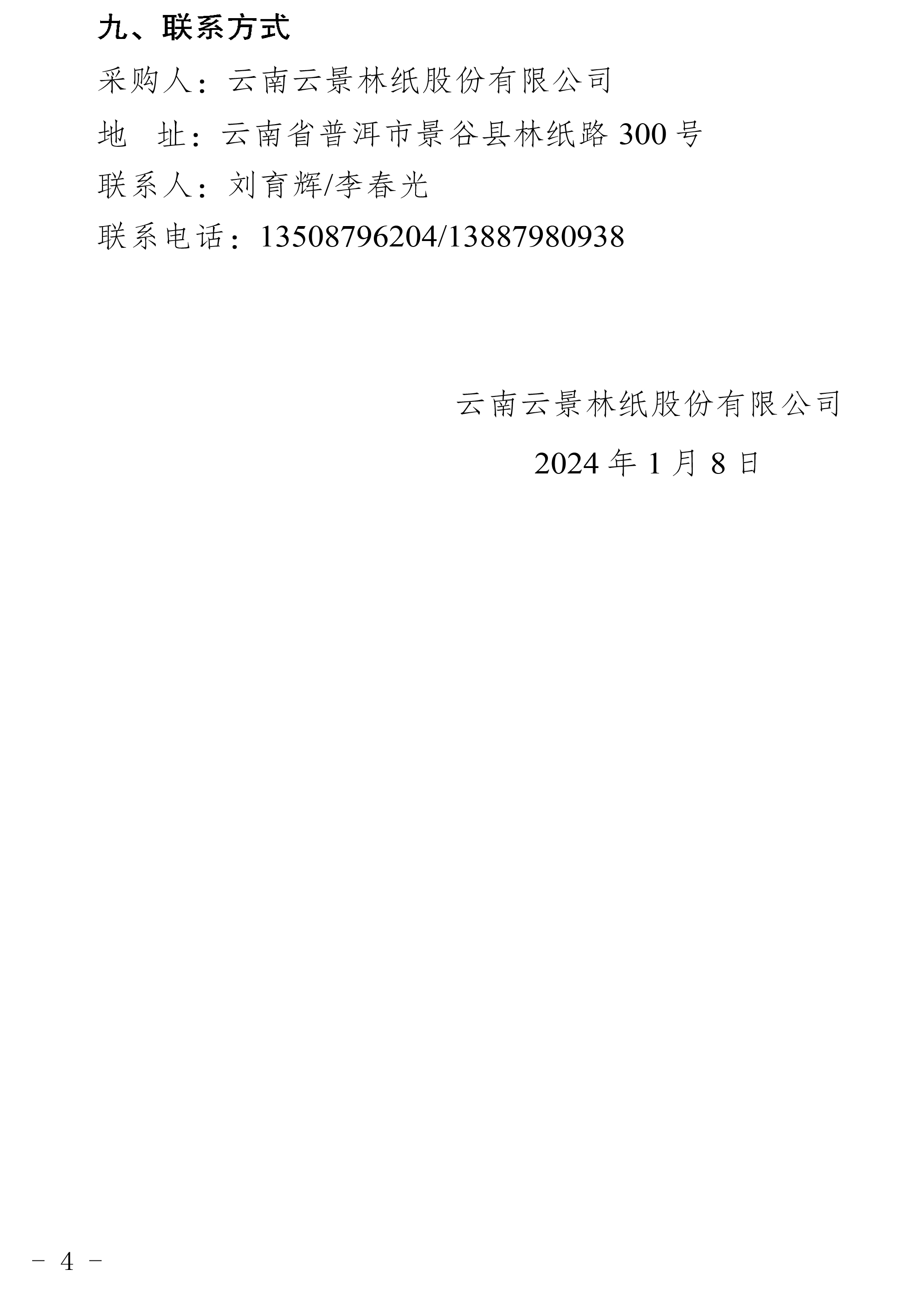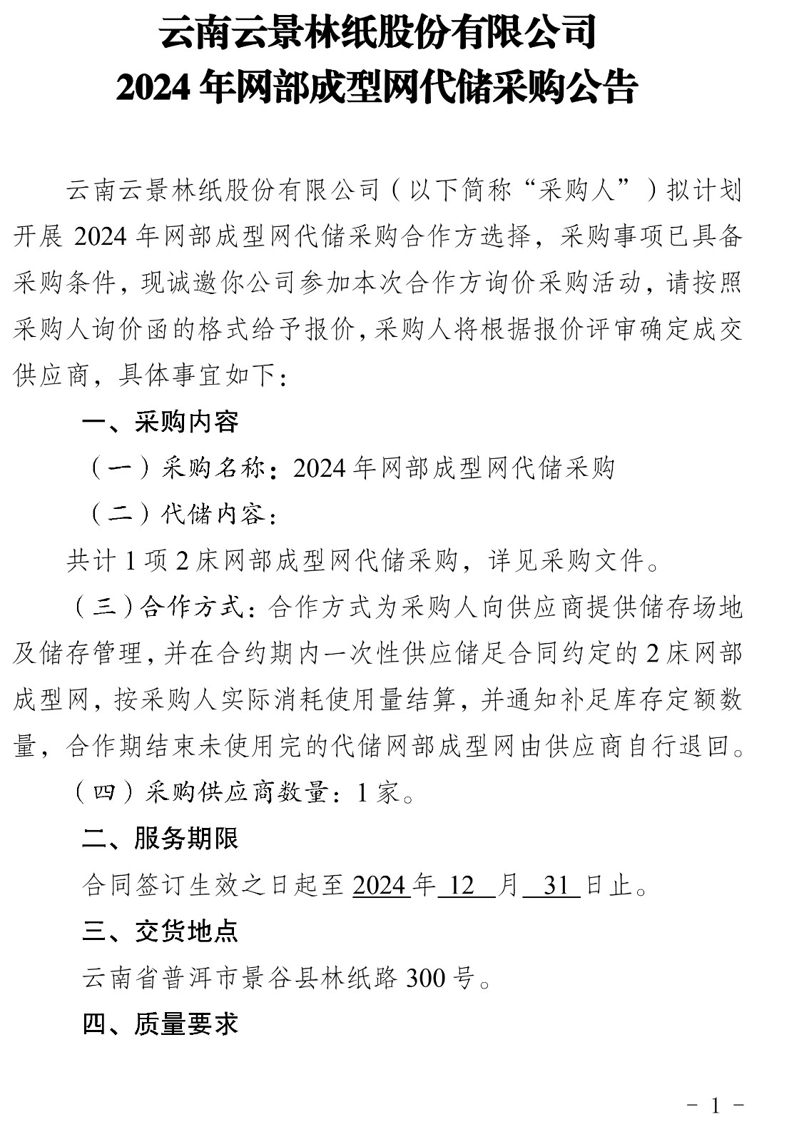 云南云景林紙股份有限公司2024年濾套代儲采購公告