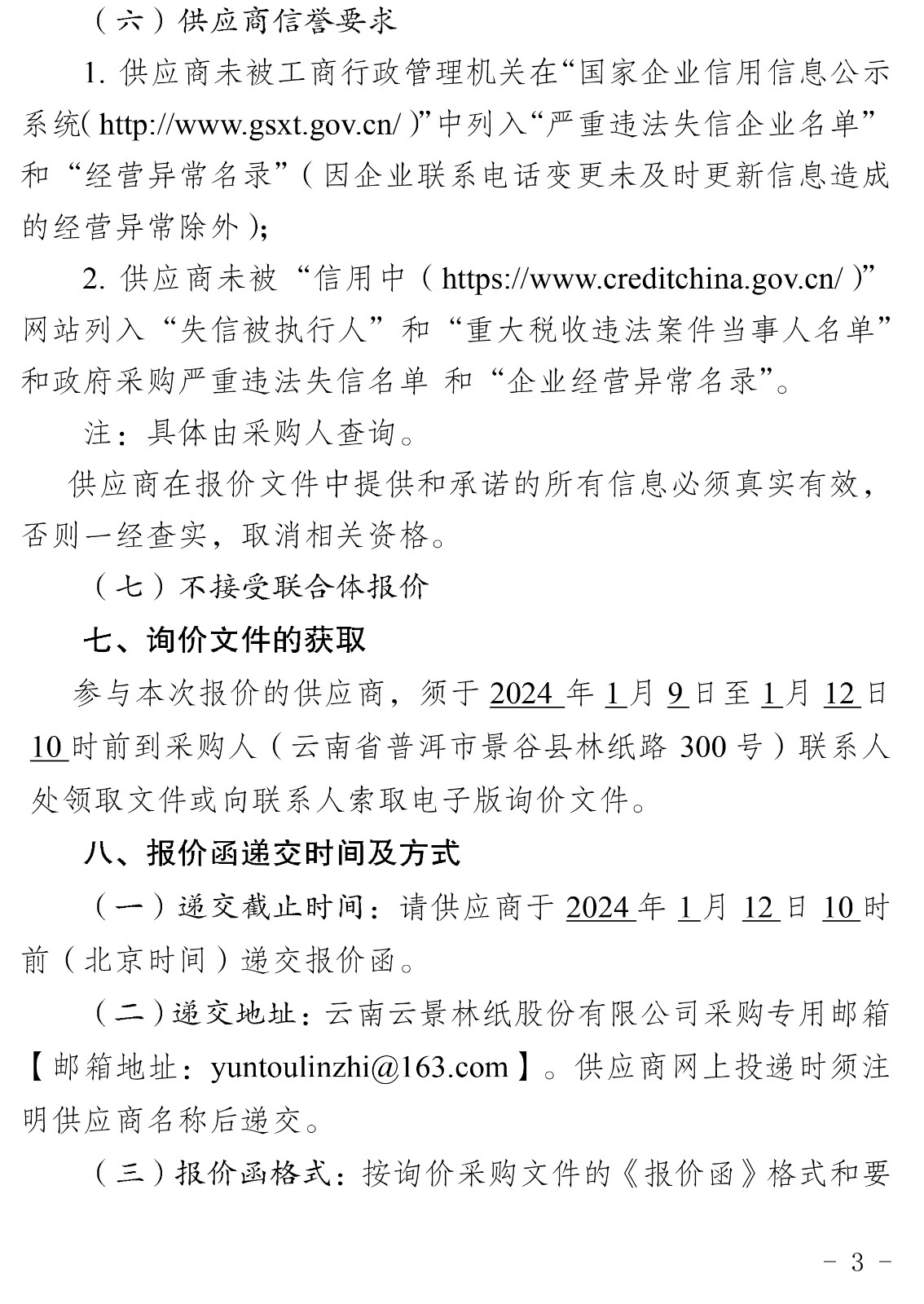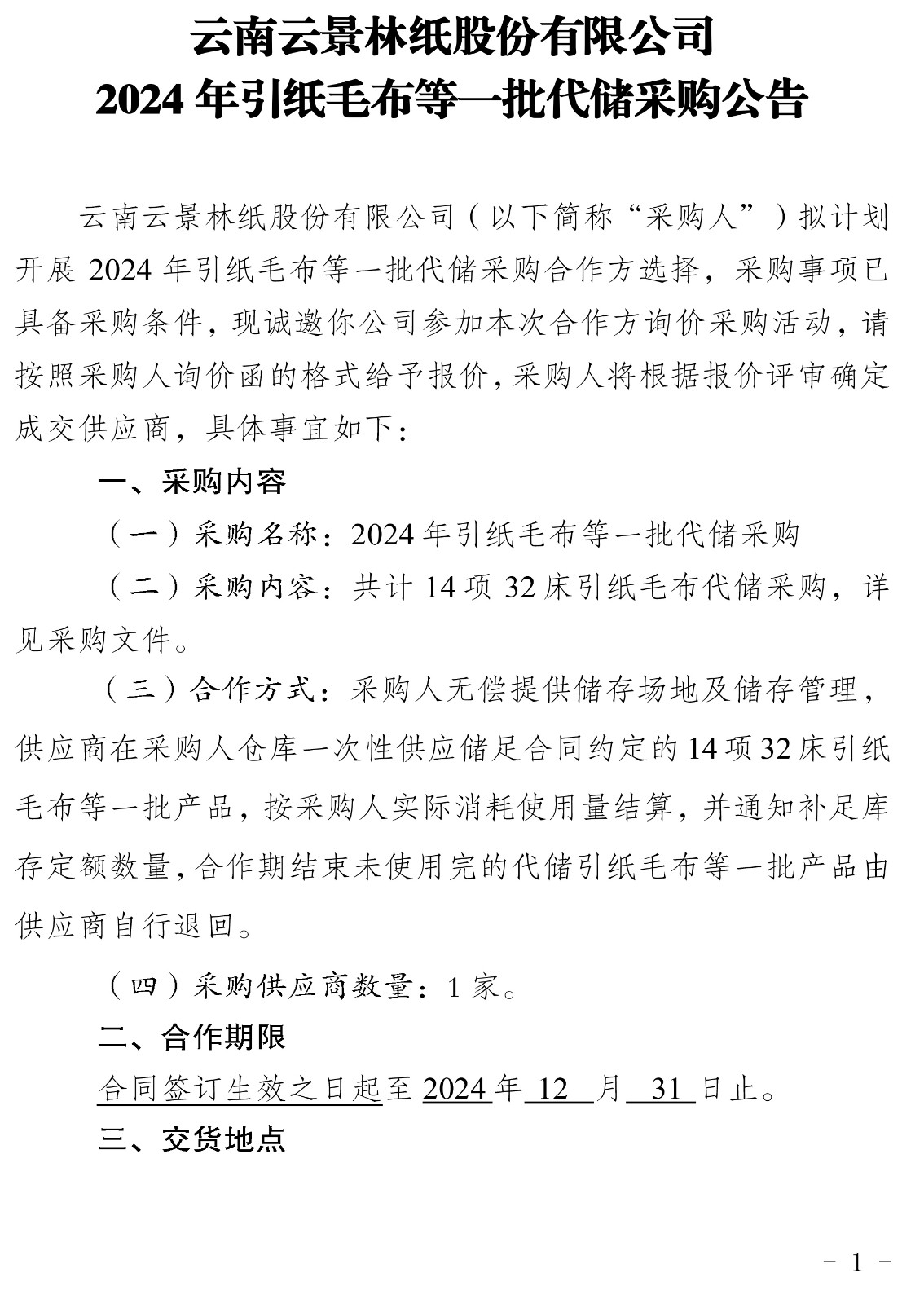 云南云景林紙股份有限公司2024年引紙毛布等一批代儲(chǔ)采購(gòu)公告