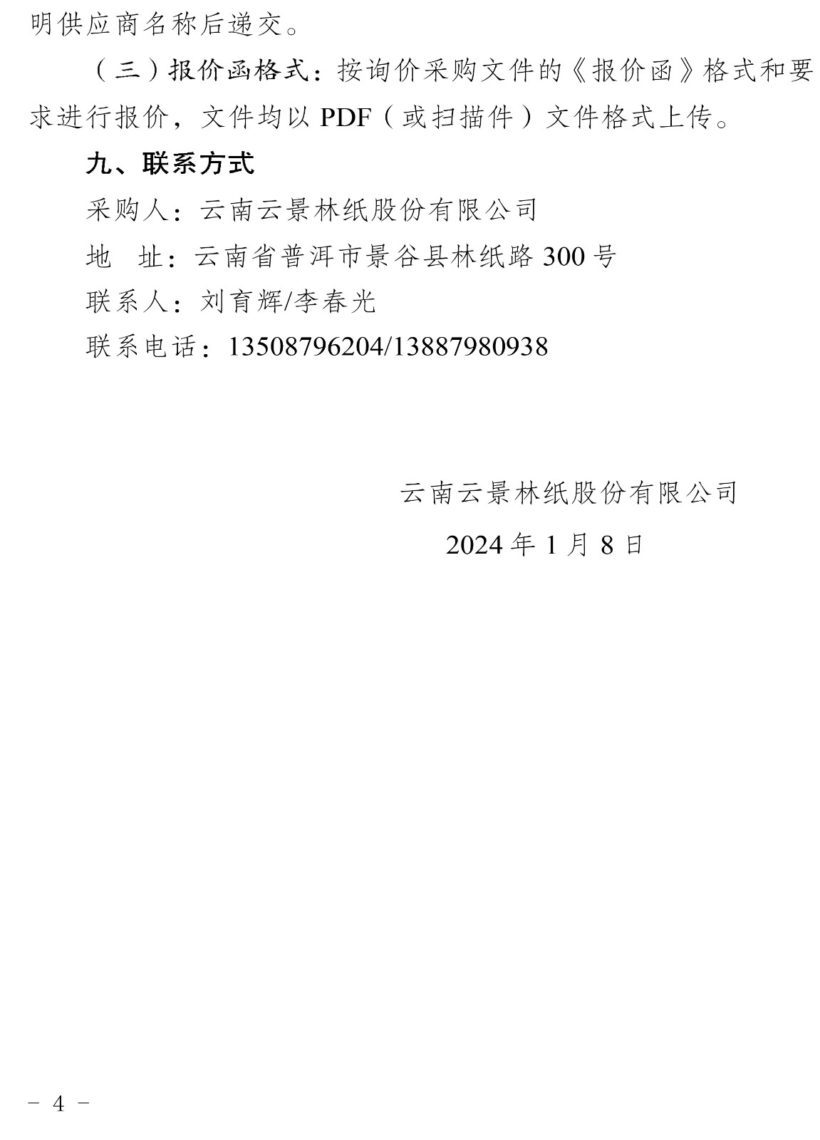 云南云景林紙股份有限公司2024年軸承代儲(chǔ)采購(gòu)公告