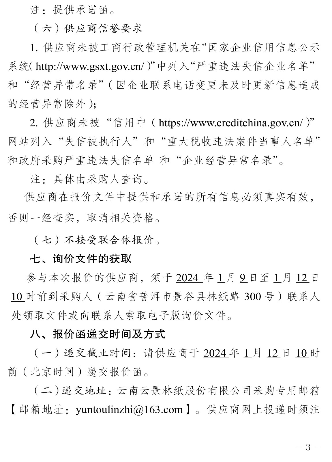 云南云景林紙股份有限公司2024年引紙毛布等一批代儲(chǔ)采購(gòu)公告