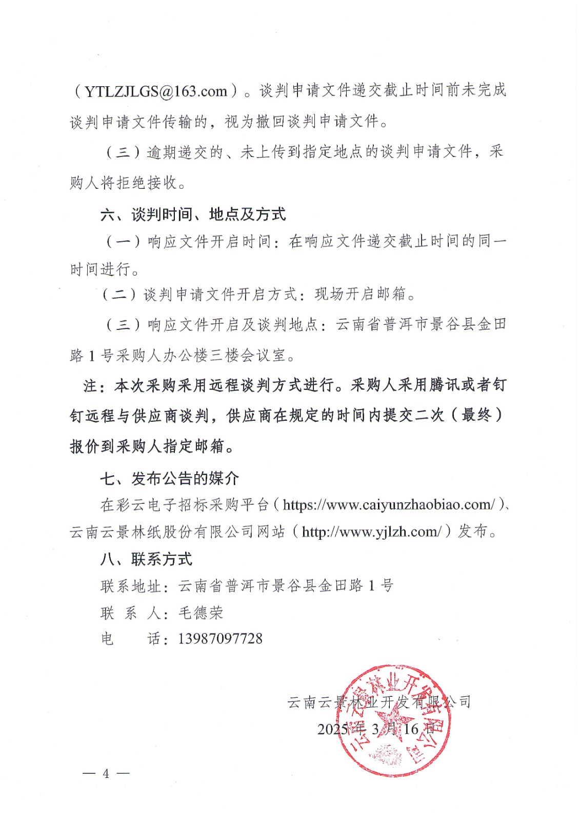 云南云景林業(yè)開發(fā)有限公司2025年度糠采購項目公開談判公告
