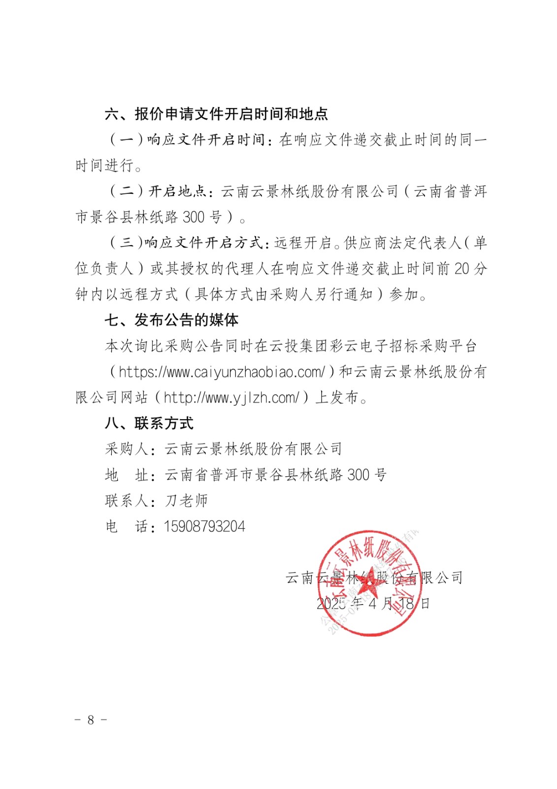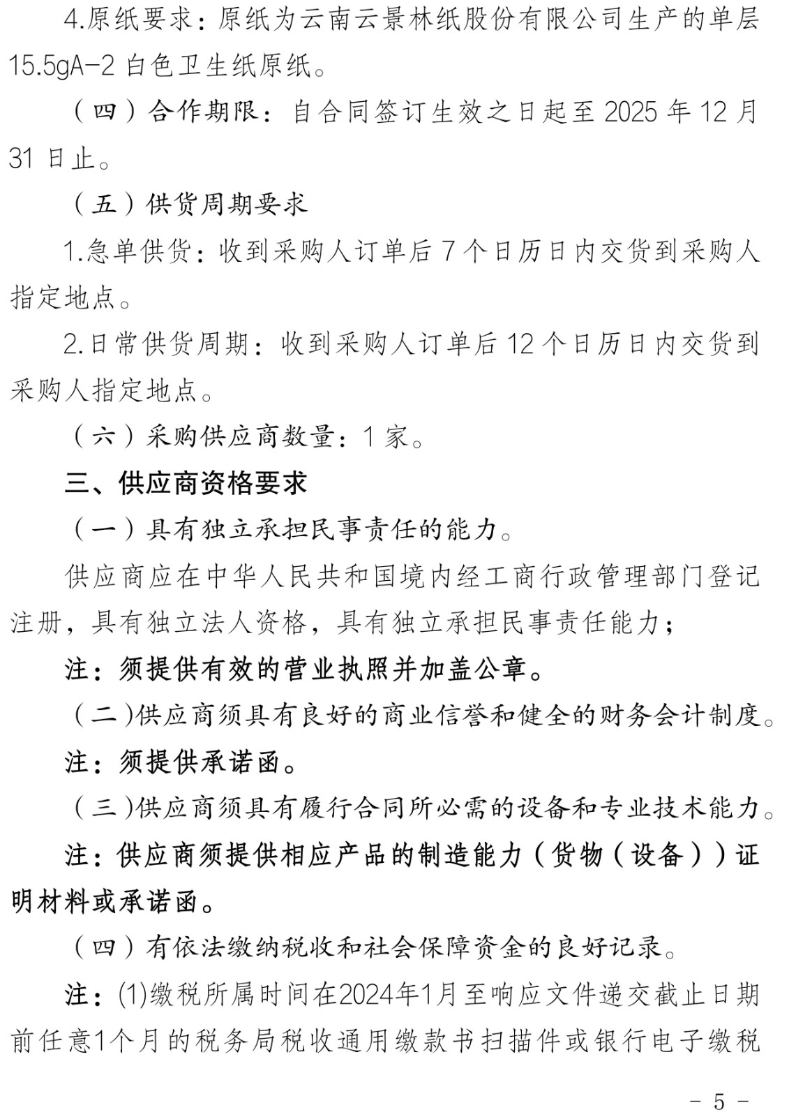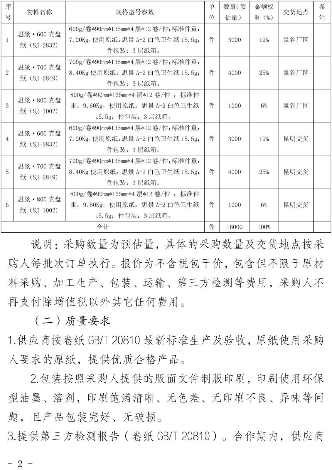云南云景林紙股份有限公司2025年思景擦手紙采購項目(二次)采購公告