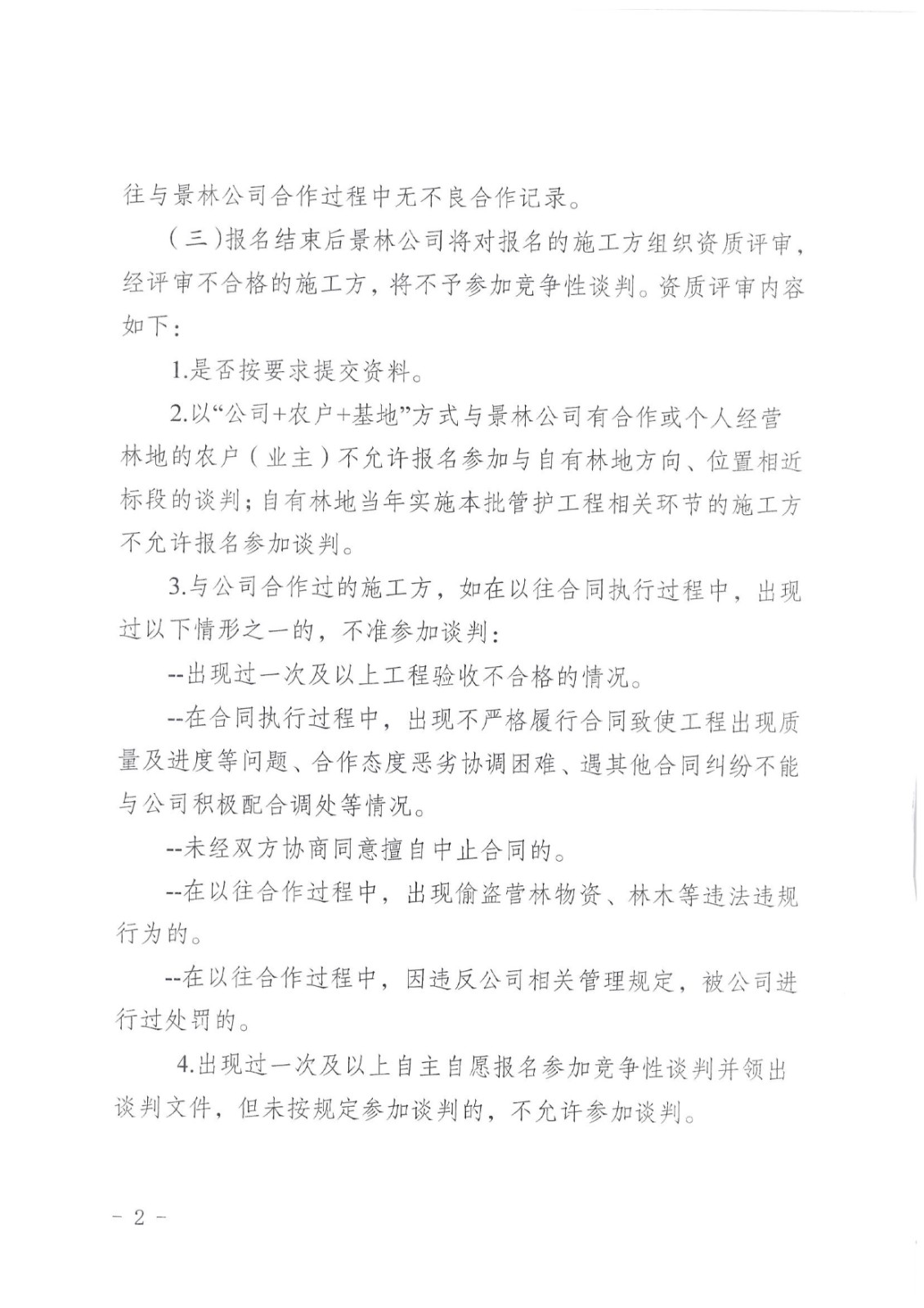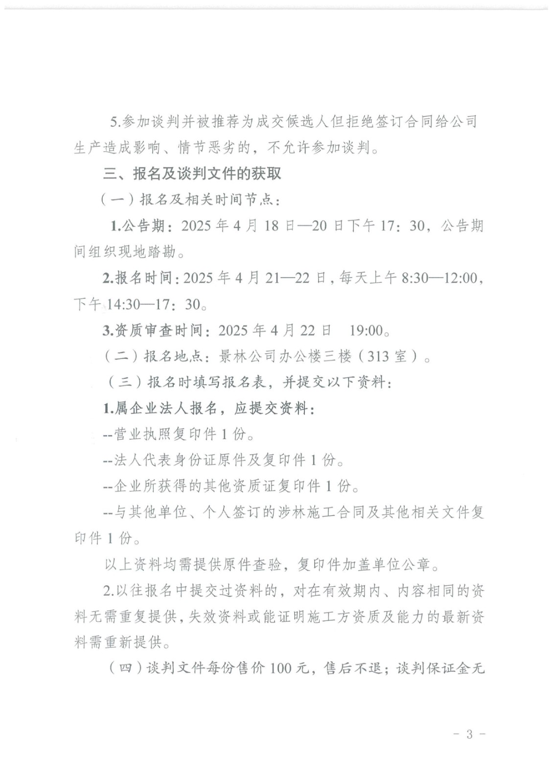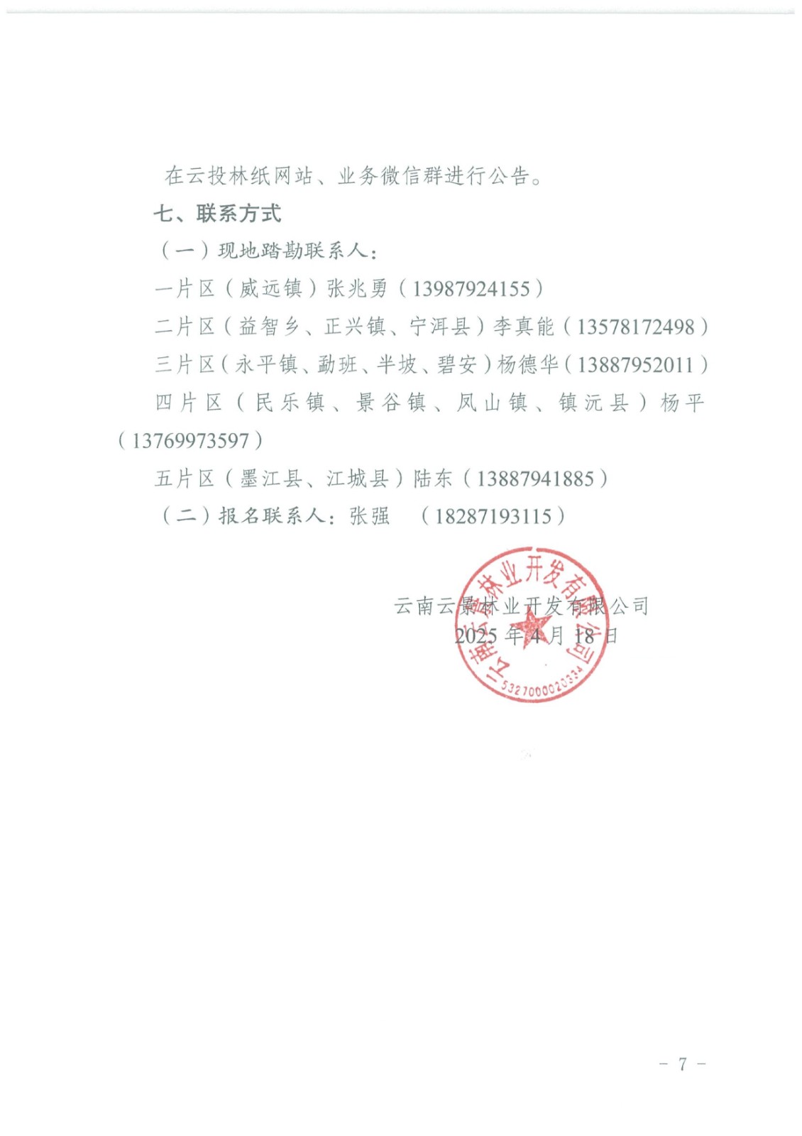 云南云景林業(yè)開(kāi)發(fā)有限公司2025年第4批林業(yè)業(yè)務(wù)(基地管護(hù))公開(kāi)談判的公告