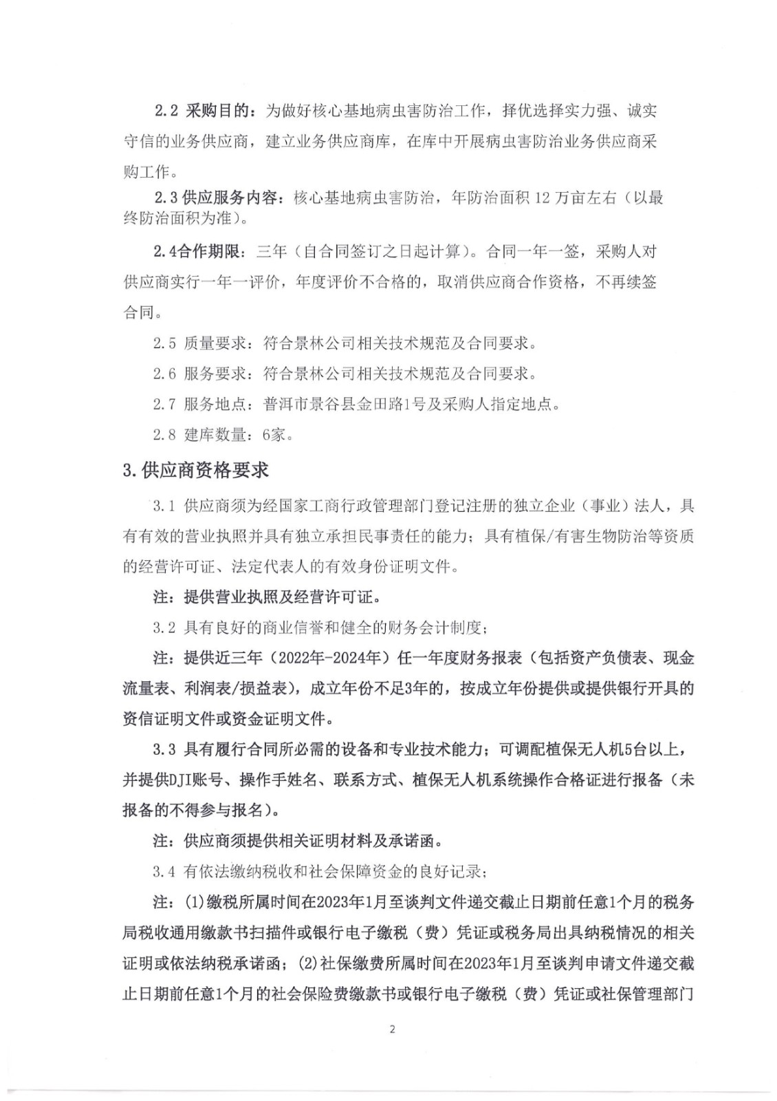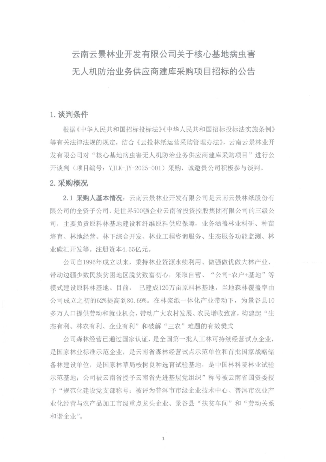 云南云景林業(yè)開發(fā)有限公司關(guān)于核心基地病蟲害無(wú)人機(jī)防治業(yè)務(wù)供應(yīng)商建庫(kù)采購(gòu)項(xiàng)目招標(biāo)的公告