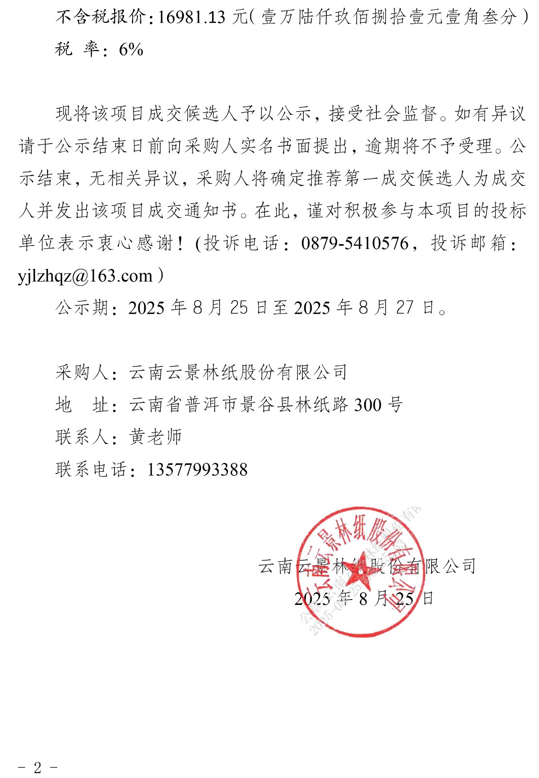 云南云景林紙股份有限公司生產(chǎn)安全事故應(yīng)急預(yù)案評(píng)審服務(wù)機(jī)構(gòu)詢比采購成交候選人公示
