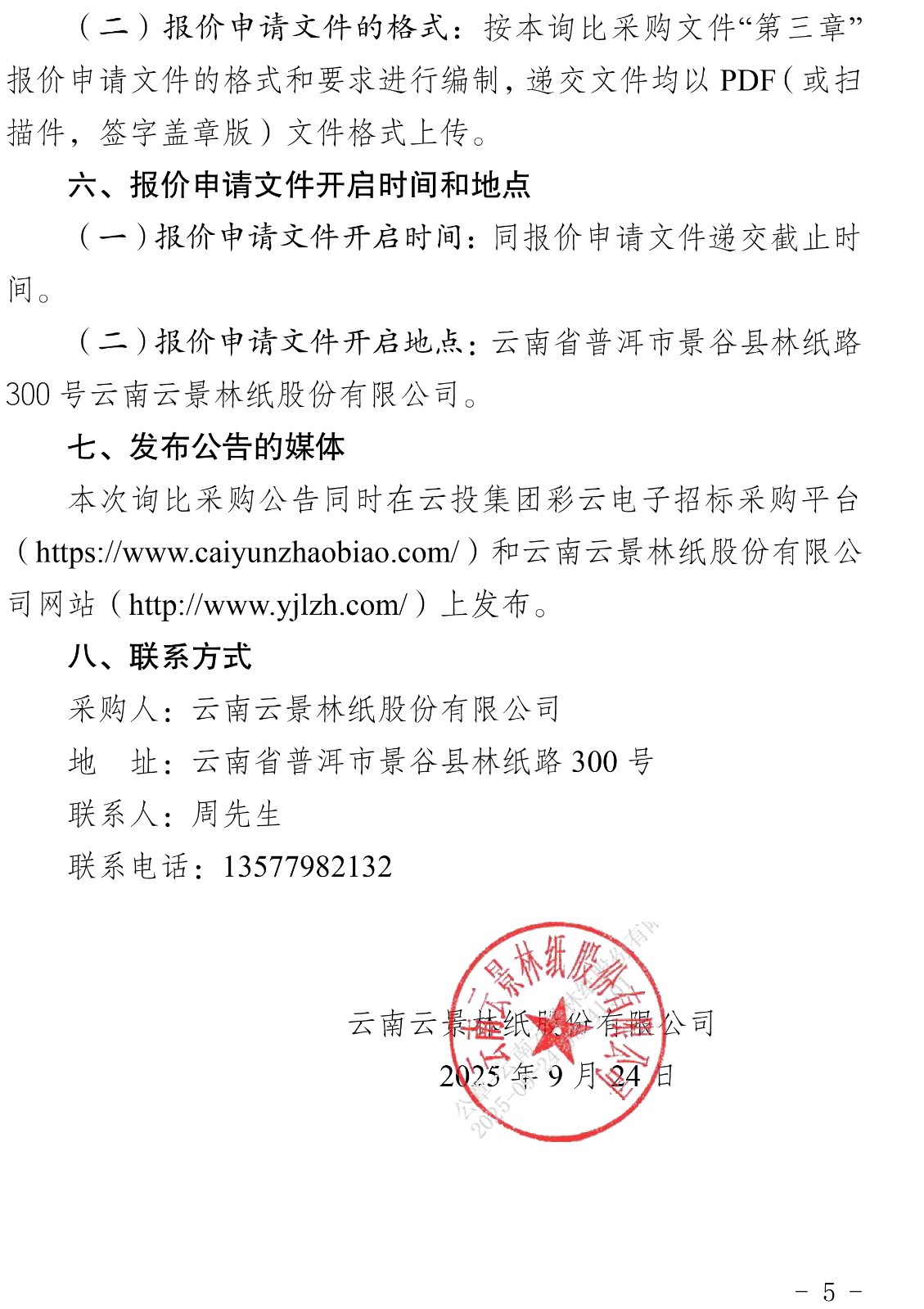 云南云景林紙股份有限公司 產品碳足跡標識認證服務機構邀請詢比采購成交結果公示