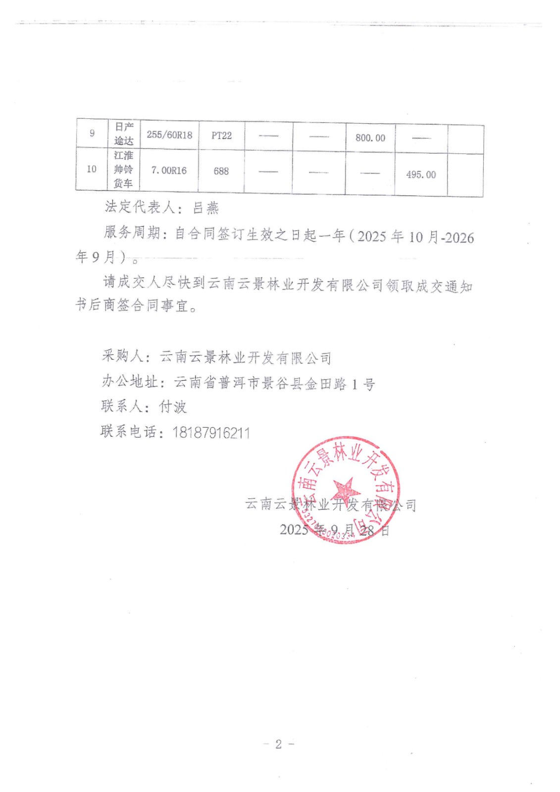 云南云景林業(yè)開發(fā)有限公司車輛輪胎采購項目詢比成交結(jié)果公示