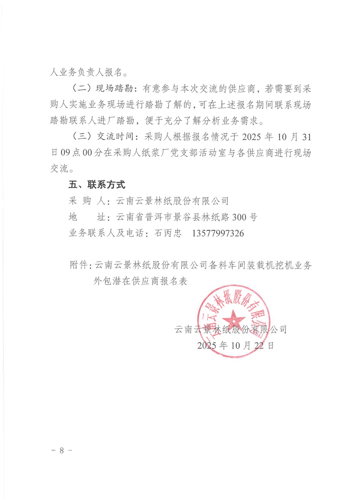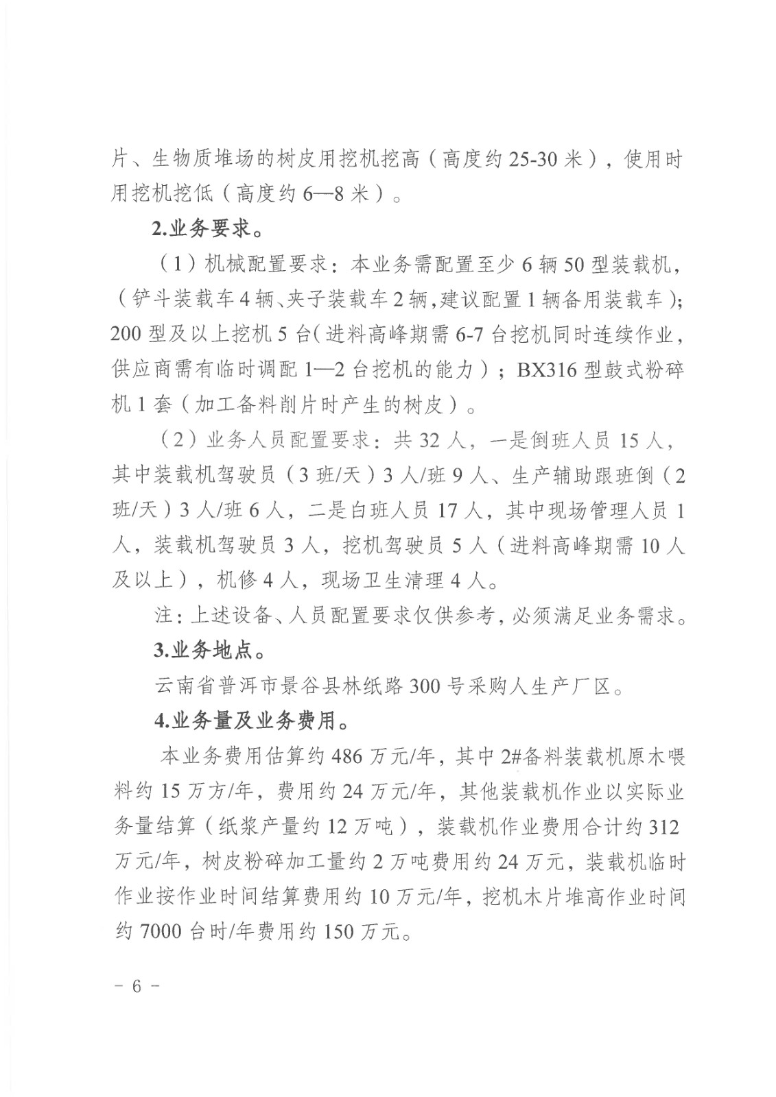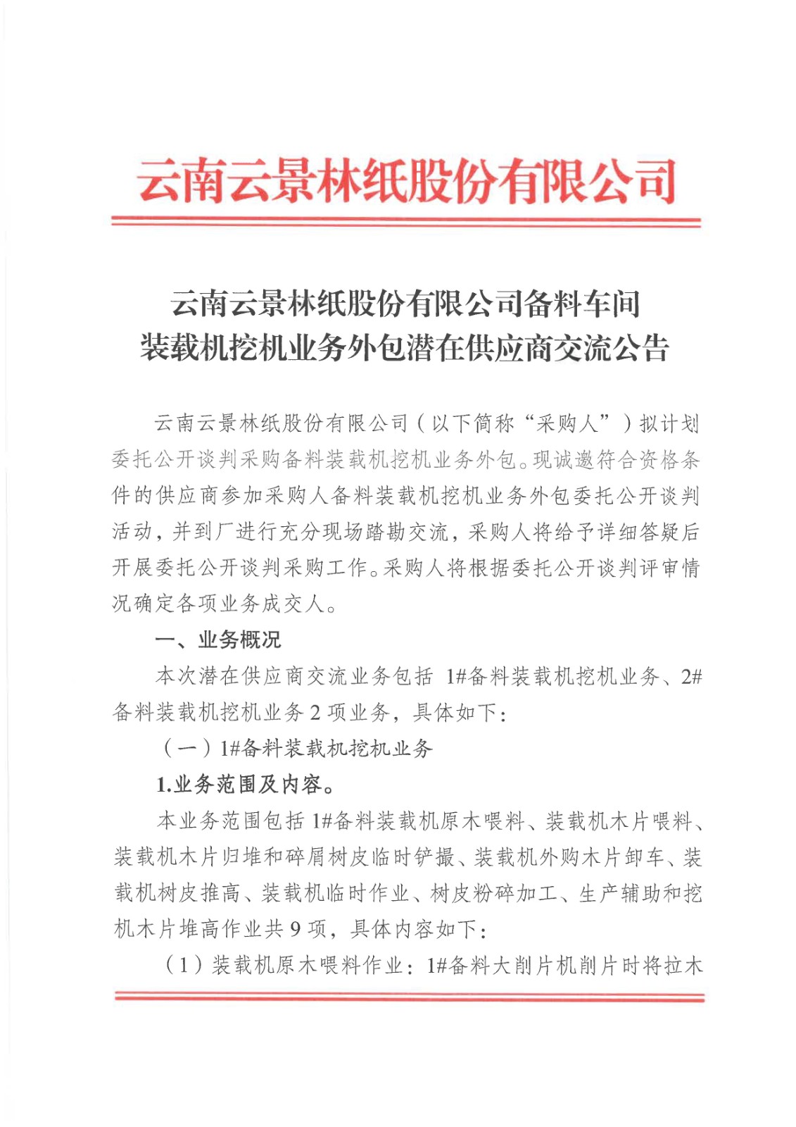 云南云景林紙股份有限公司備料車(chē)間裝載機(jī)挖機(jī)業(yè)務(wù)外包潛在供應(yīng)商交流公告