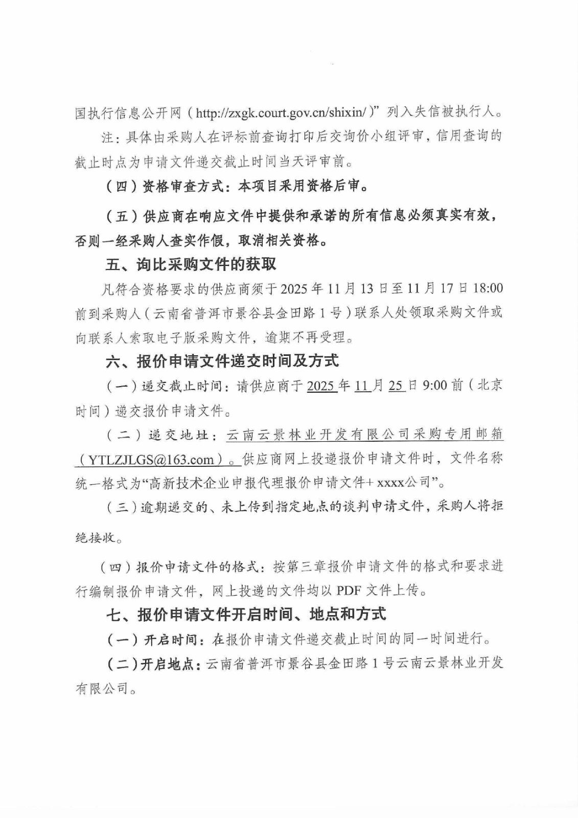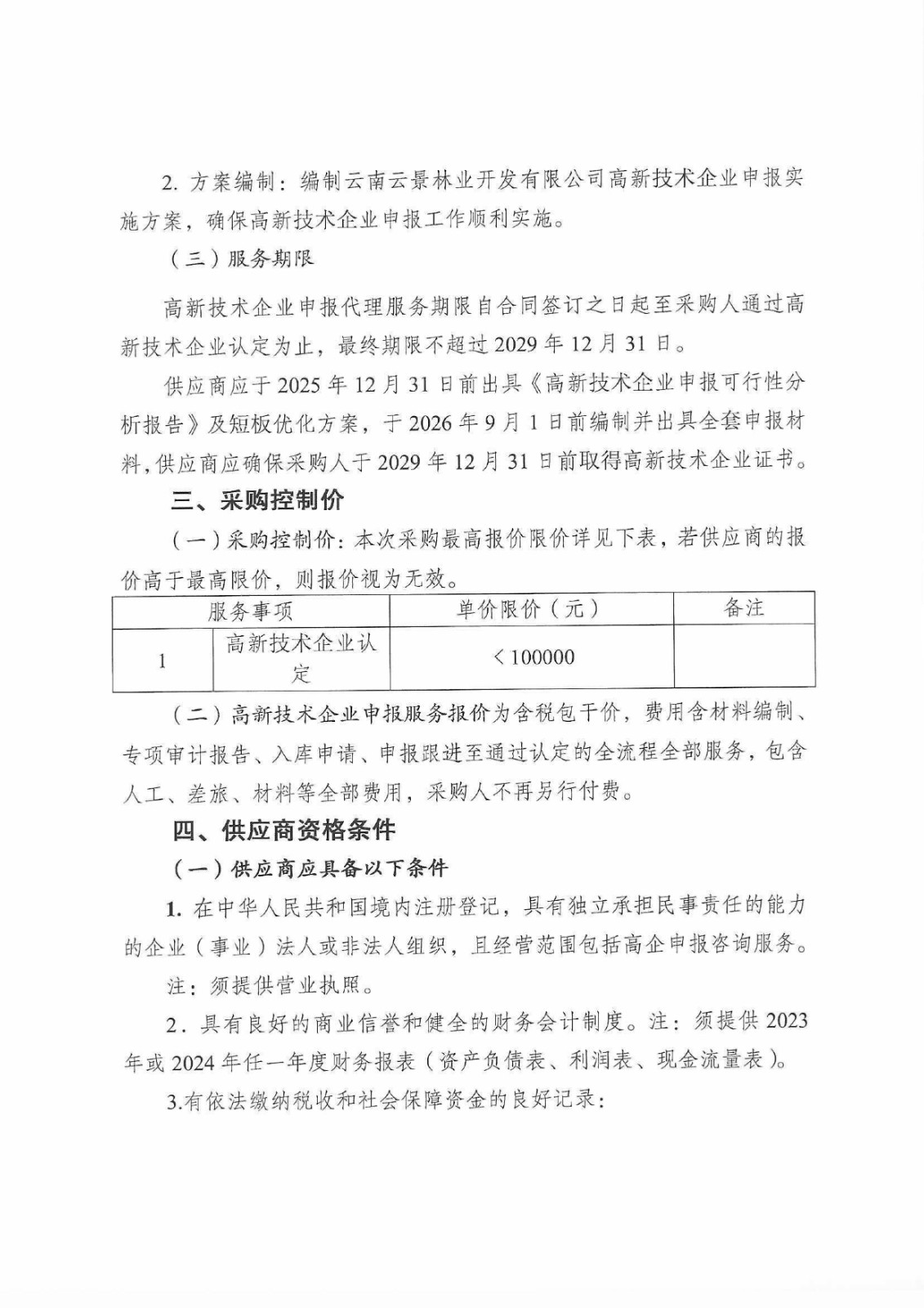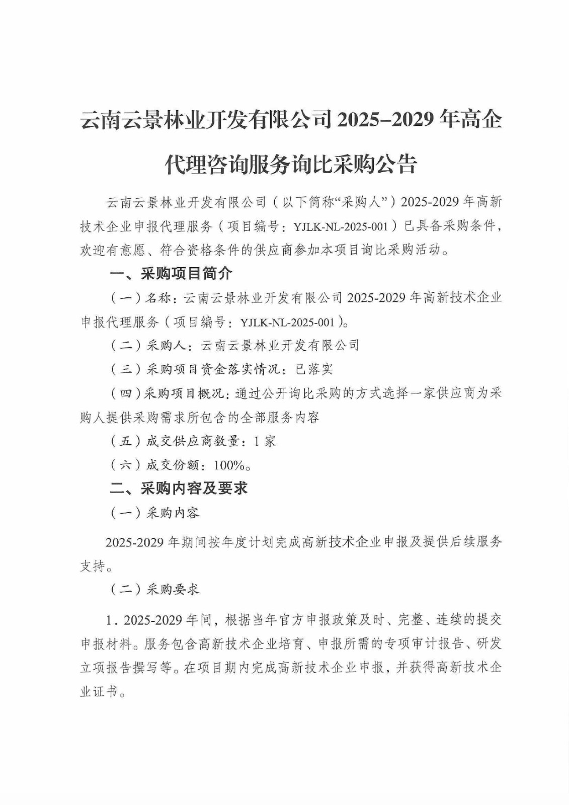 云南云景林業(yè)開(kāi)發(fā)有限公司2025-2029年高企代理咨詢(xún)服務(wù)詢(xún)比采購(gòu)公告