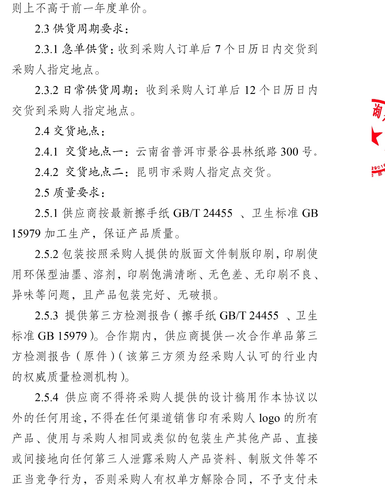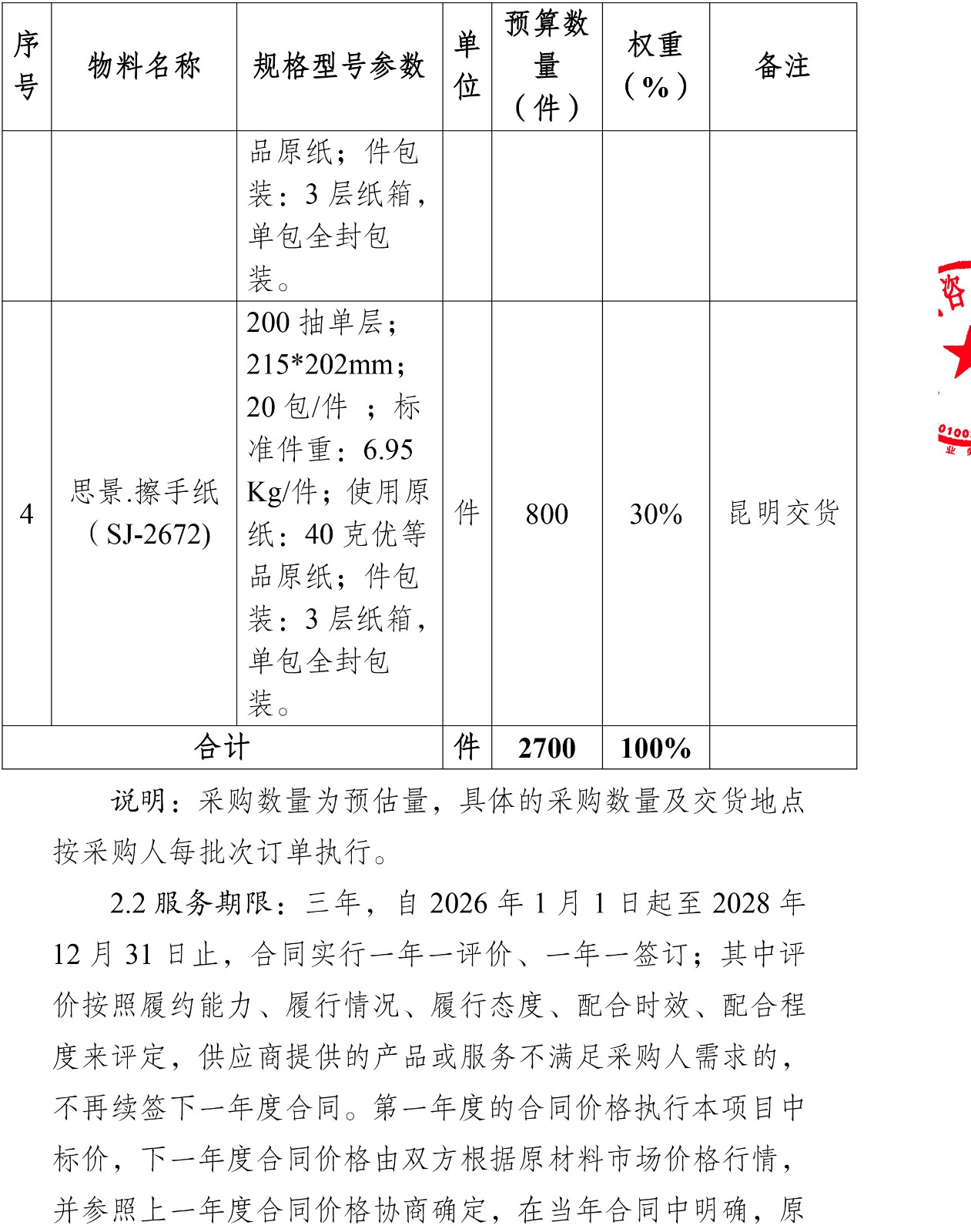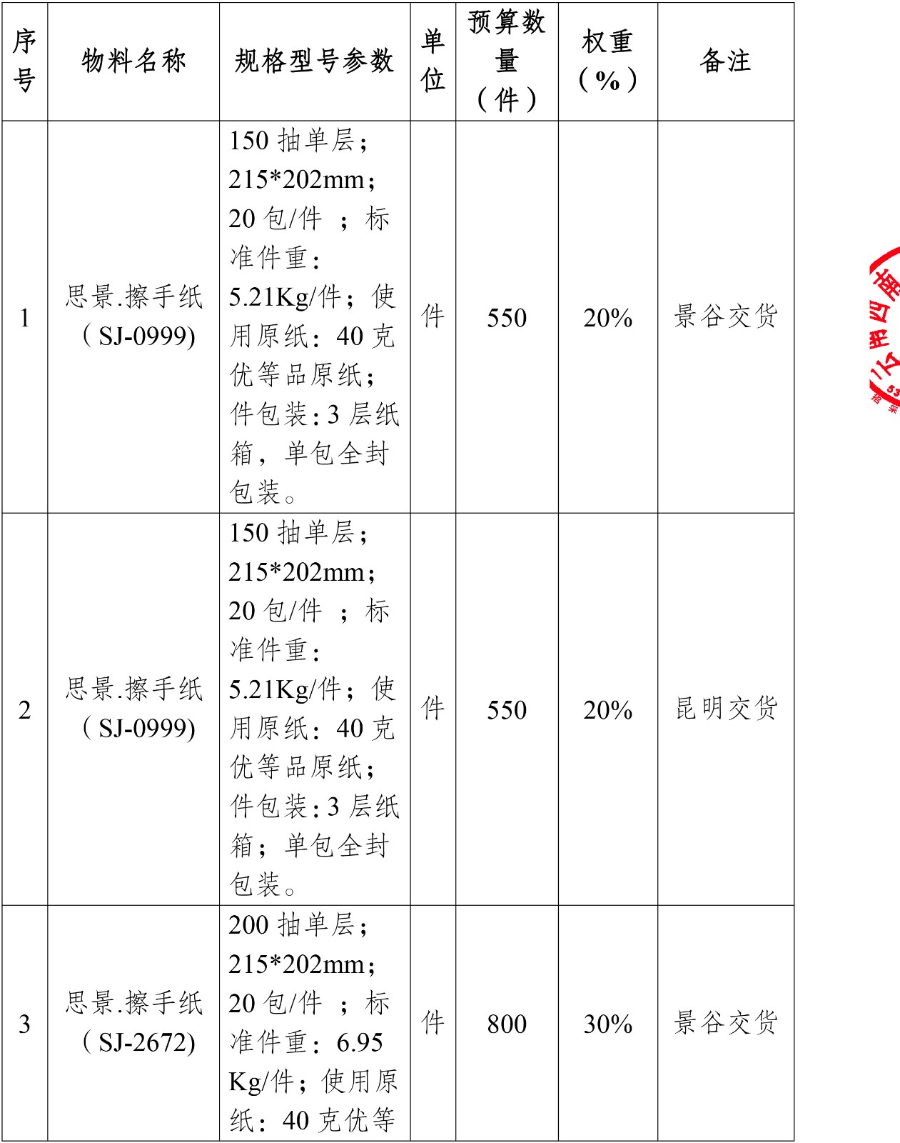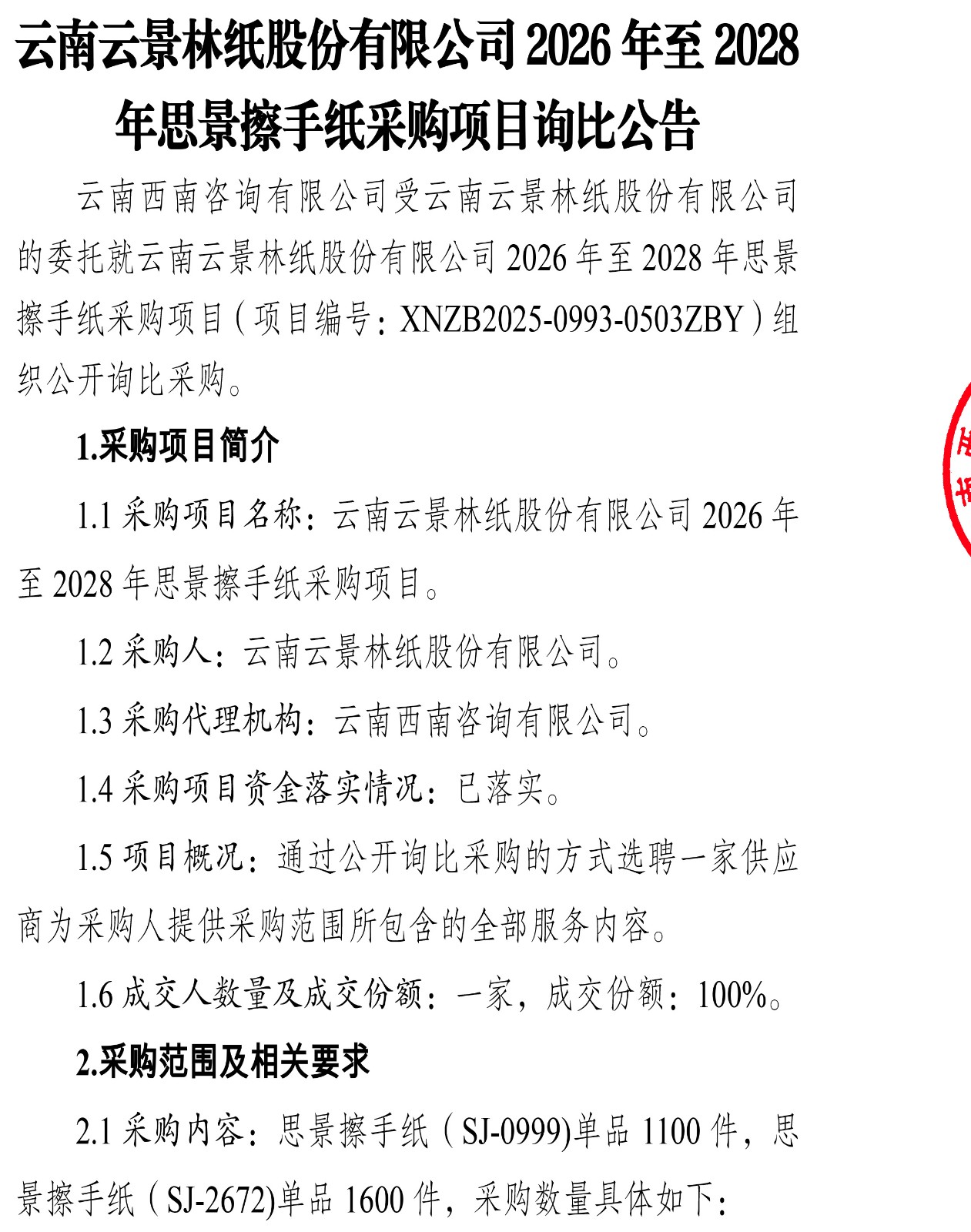 云南云景林紙股份有限公司2026年至2028年思景擦手紙采購項目詢比公告