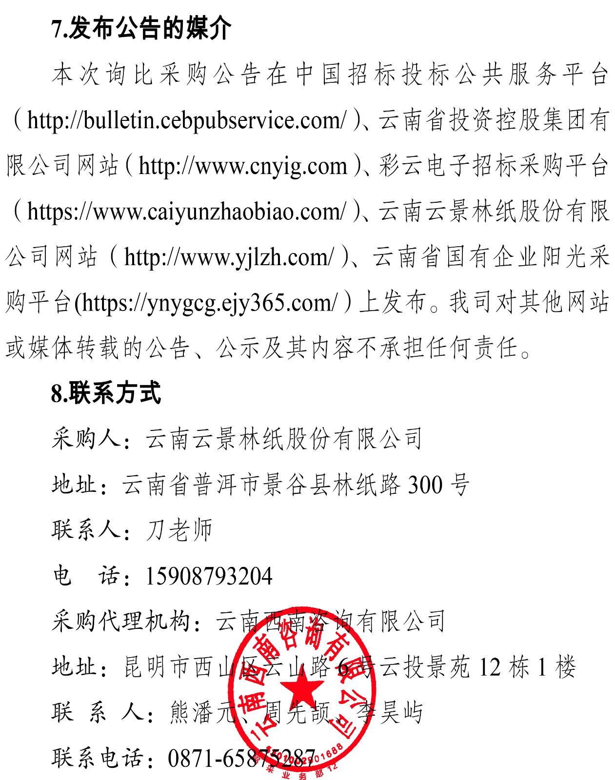 云南云景林紙股份有限公司2026年至2028年思景盤紙采購項目詢比公告