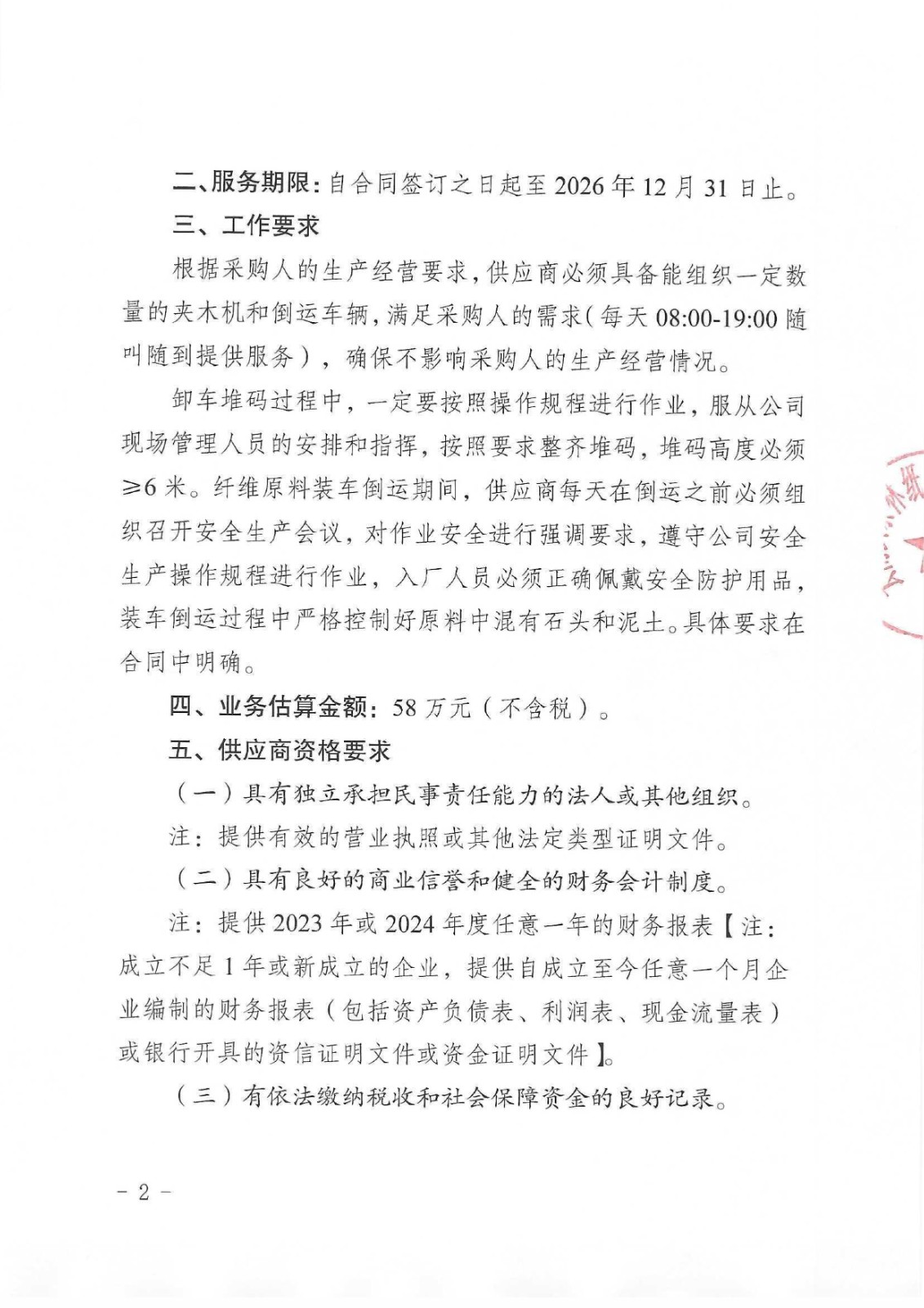 云南云景林紙股份有限公司2026年纖維原料卸車堆碼及裝車倒運(yùn)業(yè)務(wù)承攬(二次)談判采購(gòu)公告