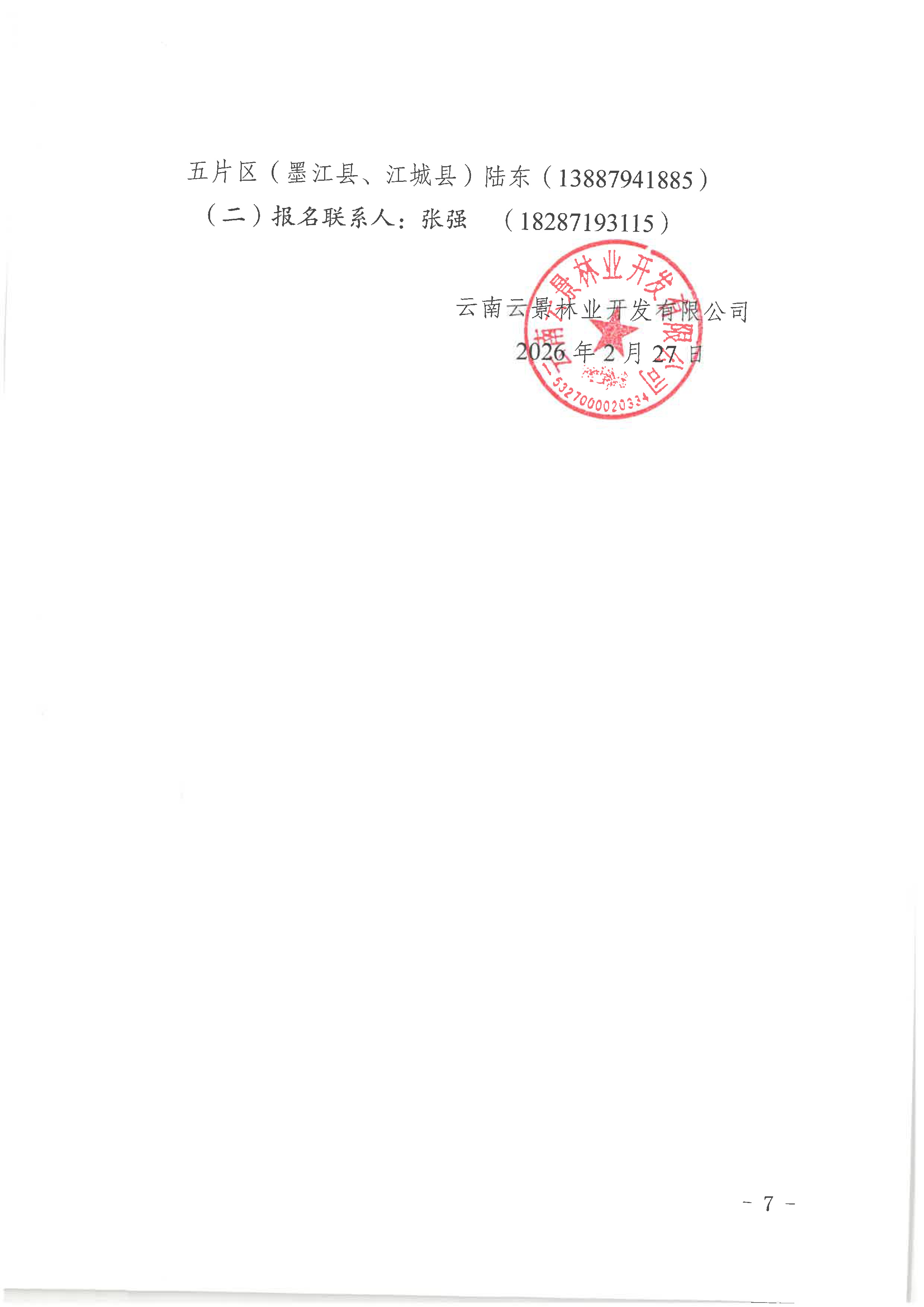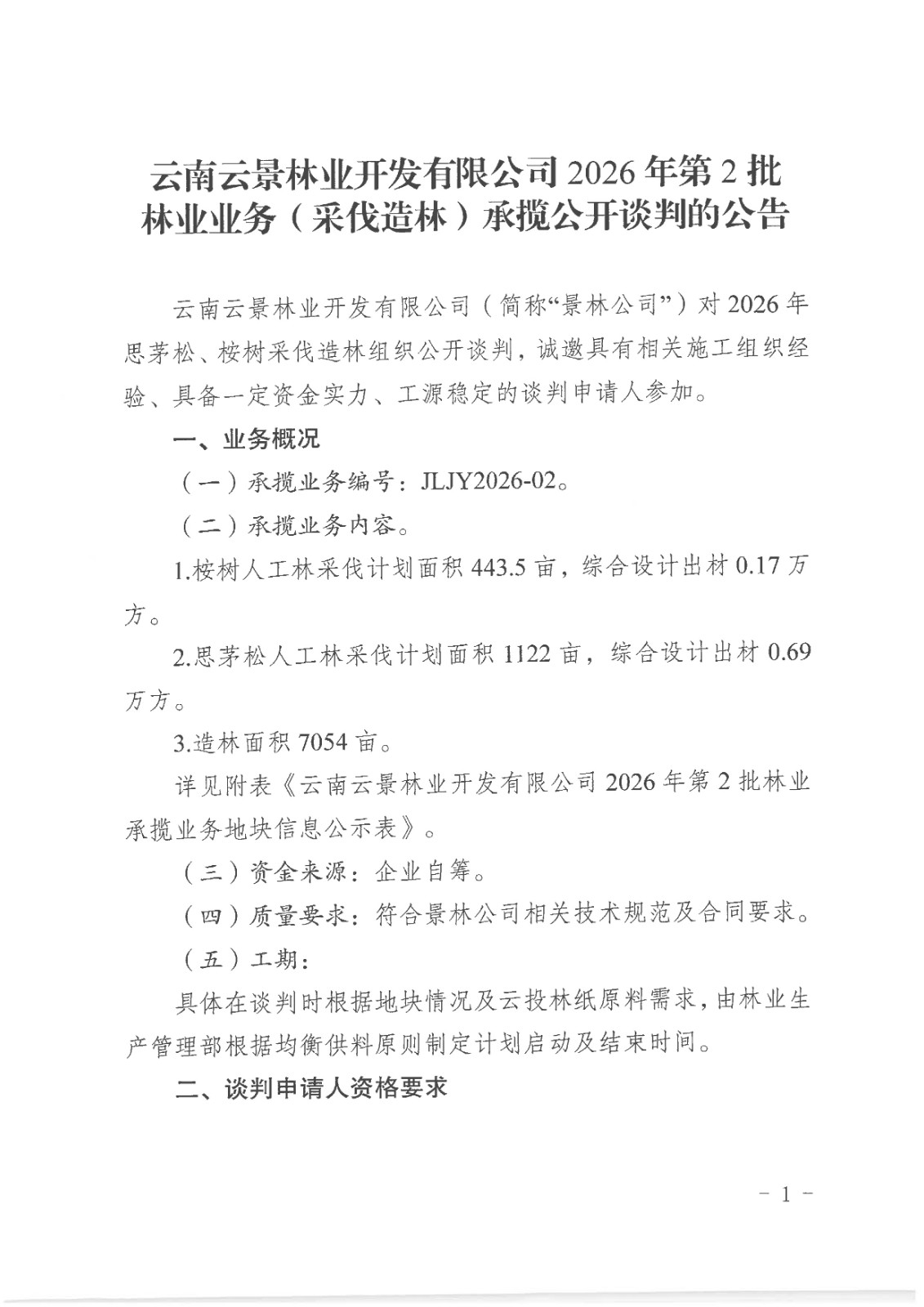 云南云景林業(yè)開發(fā)有限公司2026年第2批林業(yè)業(yè)務(wù)(采伐造林)承攬公開談判的公告