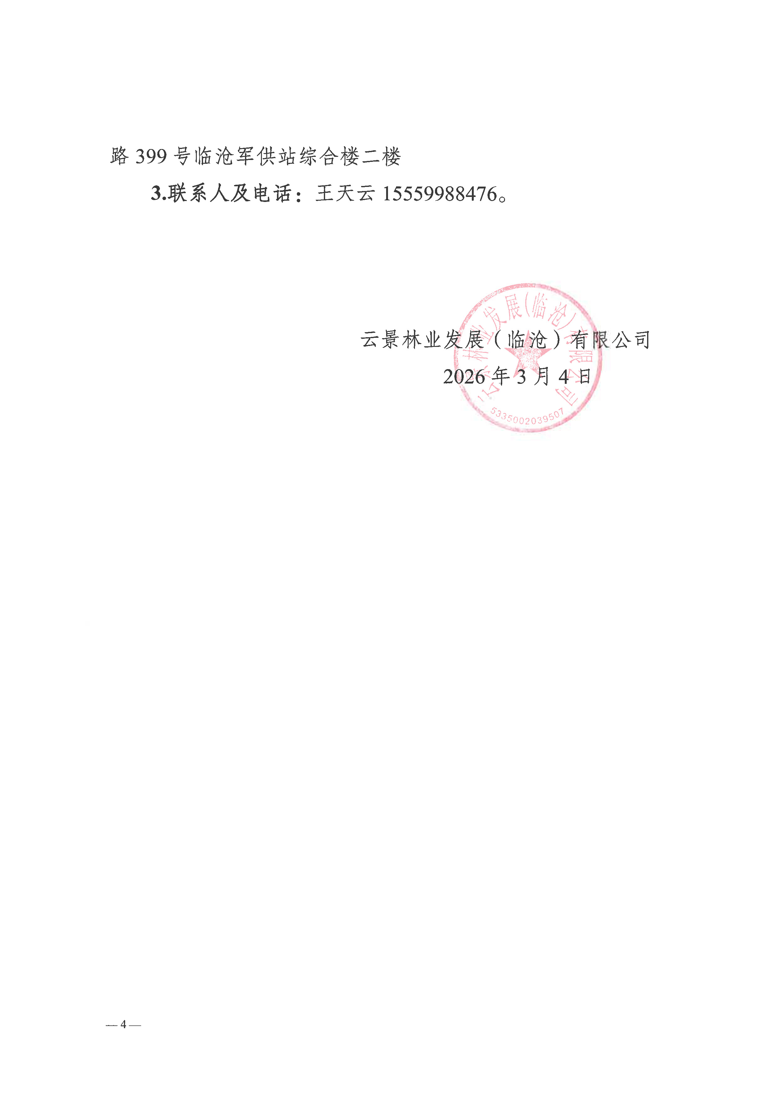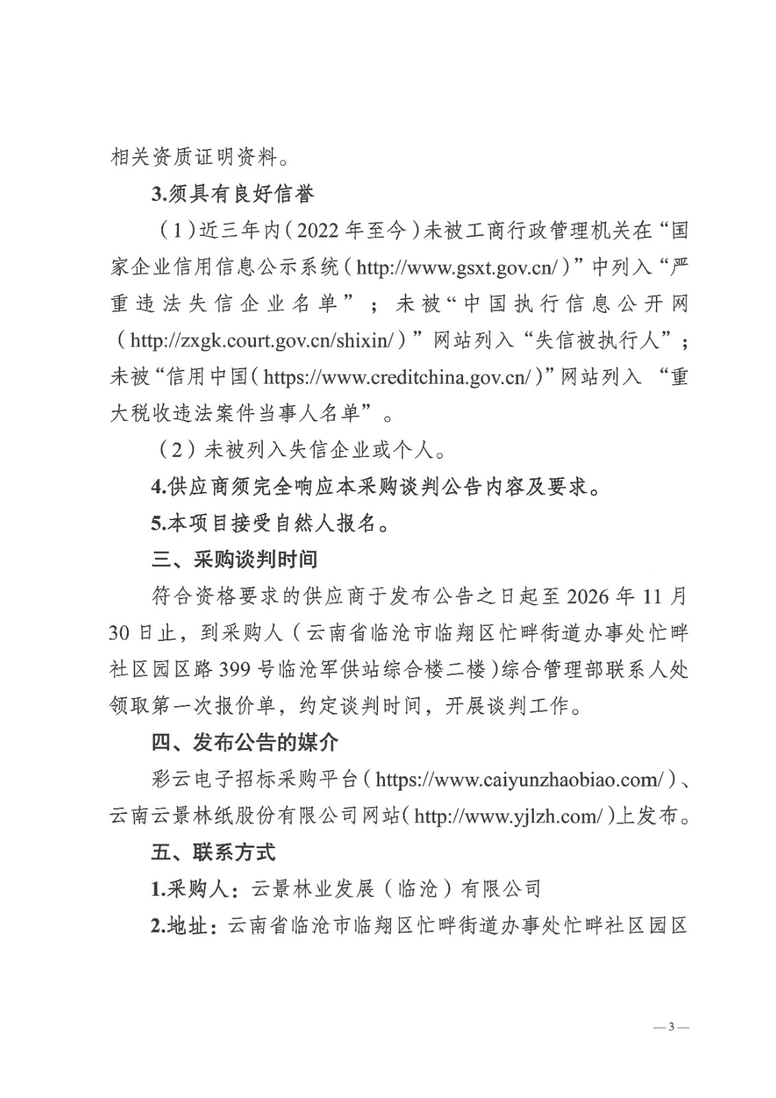云南云景林業(yè)開發(fā)有限公司2026年第3批林業(yè)業(yè)務(wù)(施肥撫育)公開談判的公告