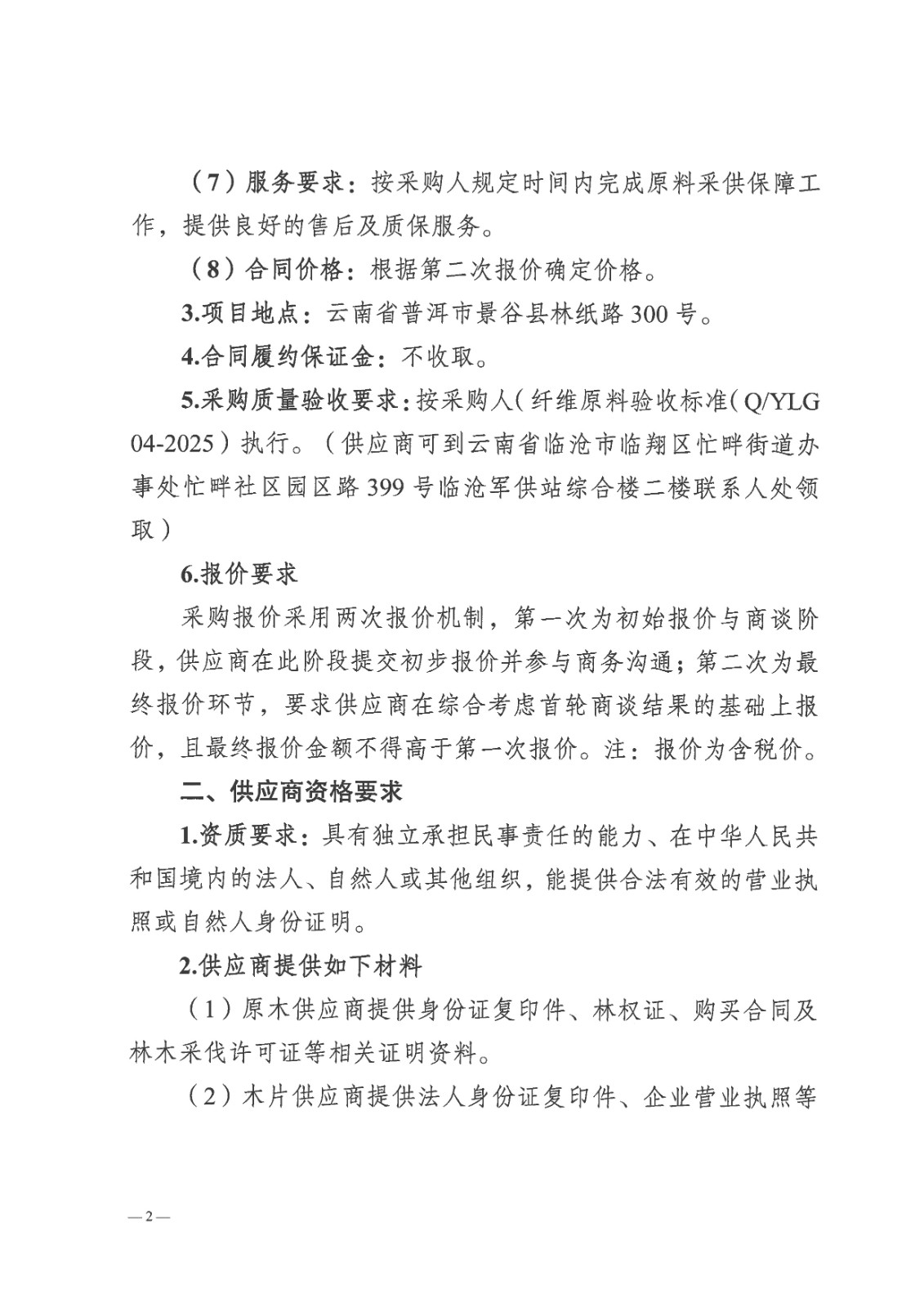 云景林業(yè)發(fā)展(臨滄)有限公司2026年市場(chǎng)纖維原料采購(gòu)談判公告