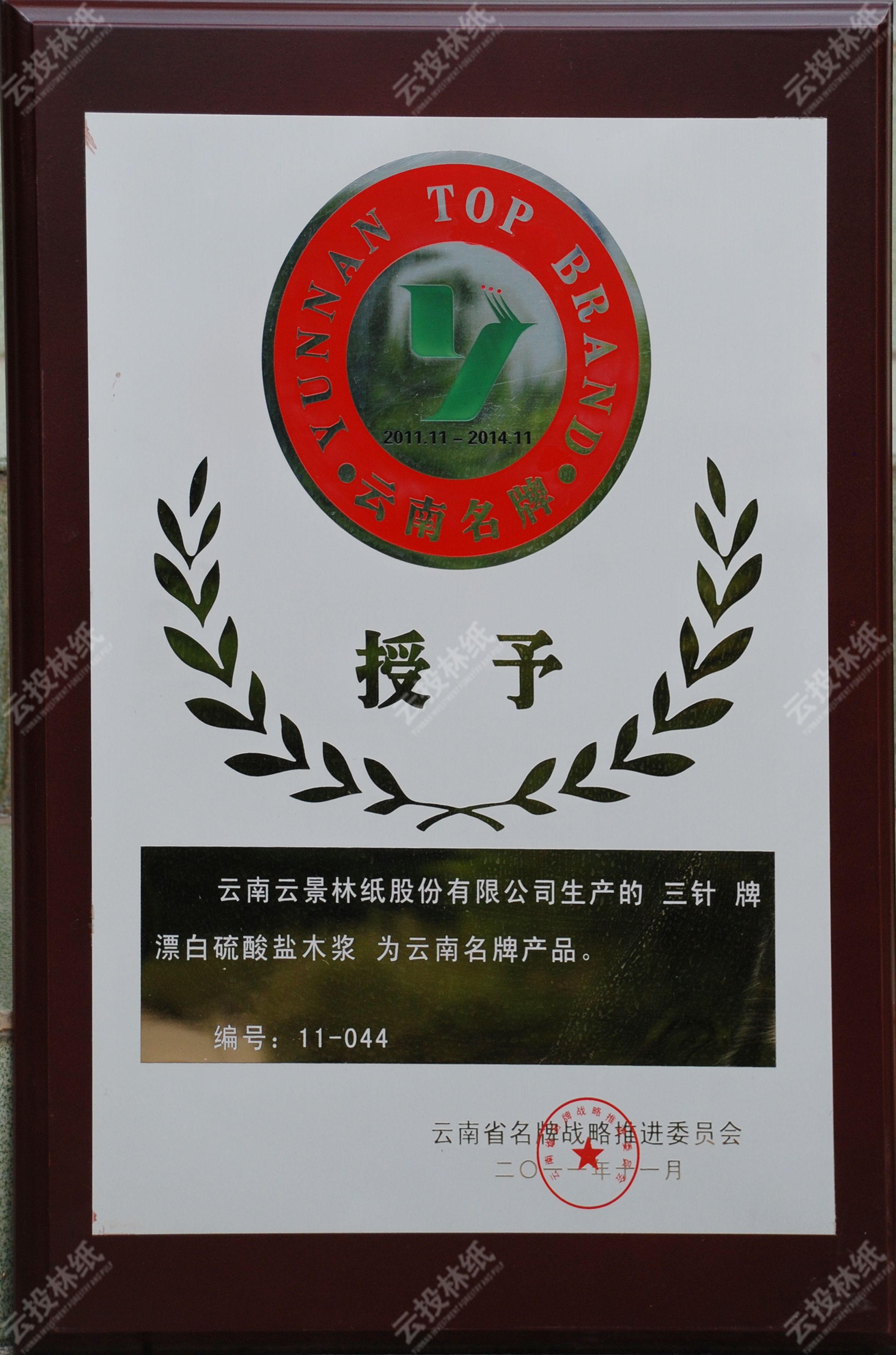 云南云景林紙股份有限公司生產(chǎn)的三針牌漂白硫酸鹽木漿為...