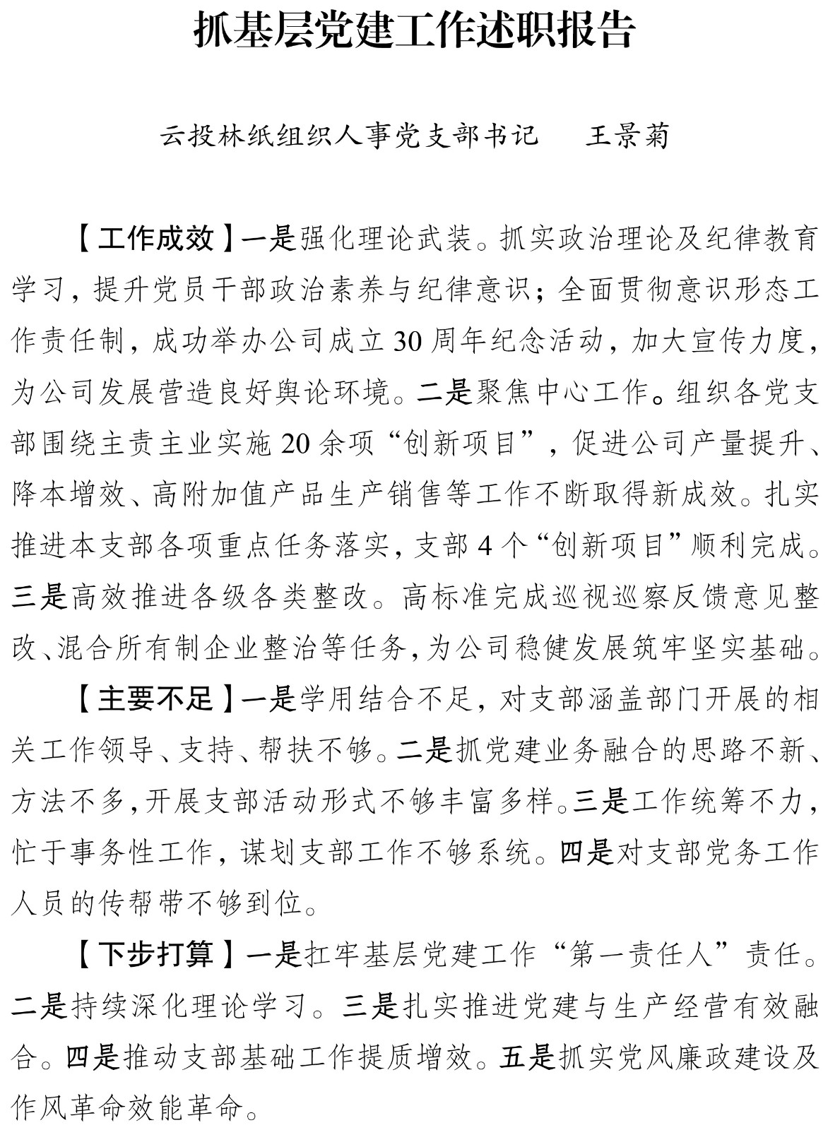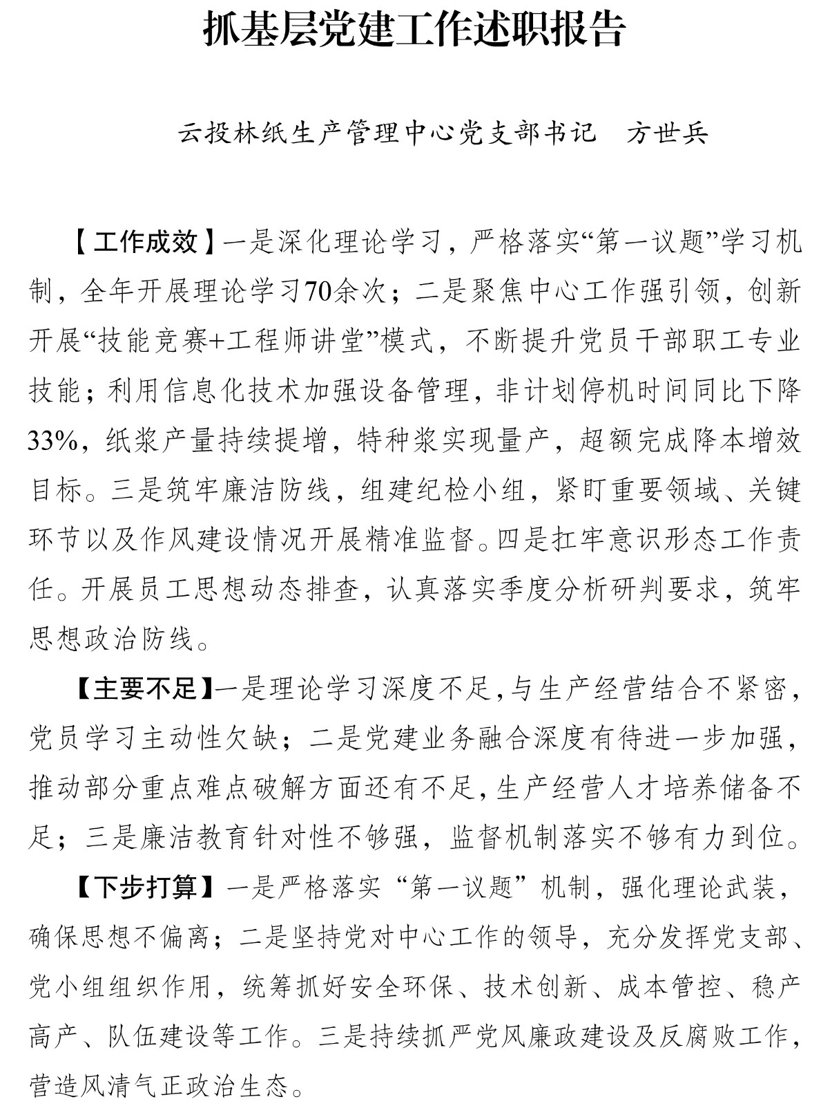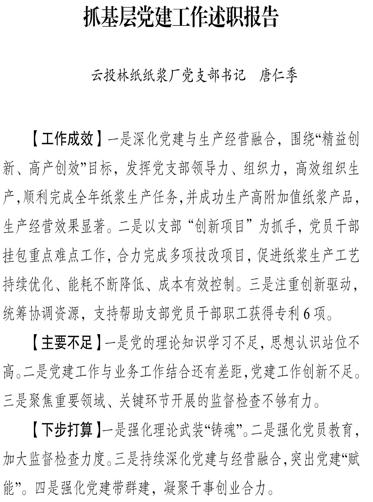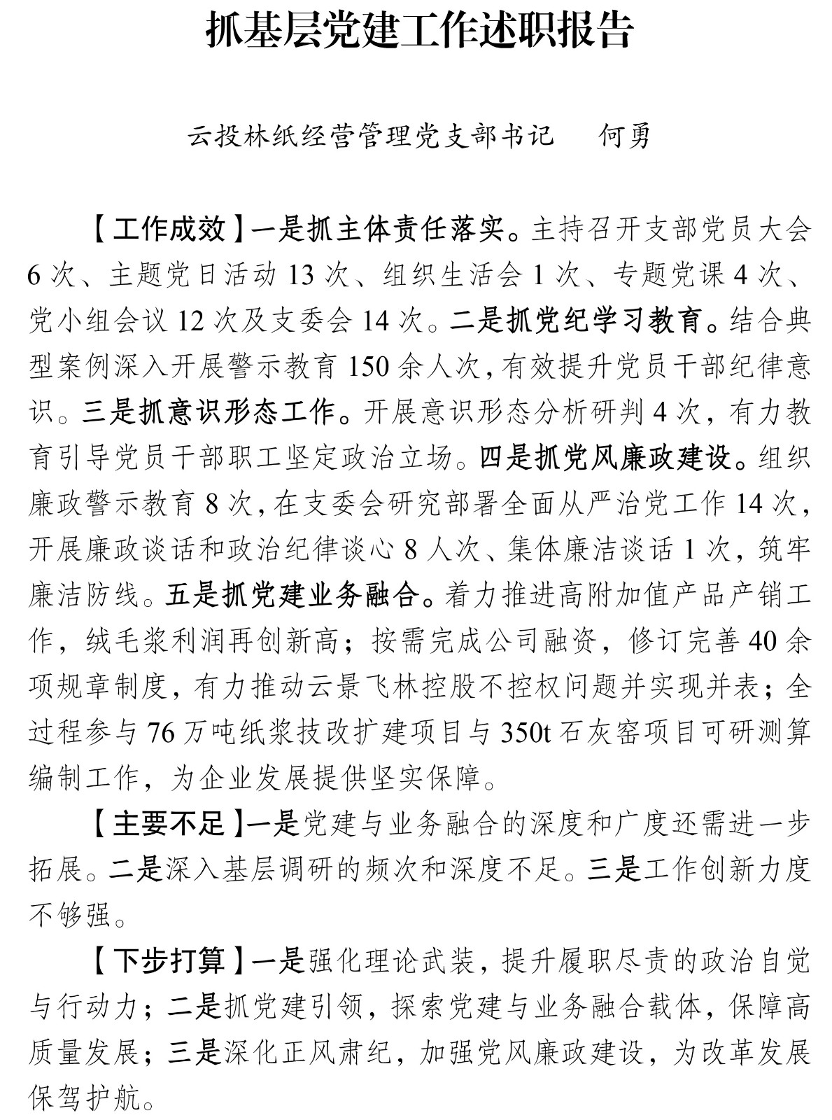 云投林紙黨支部書(shū)記抓基層黨建工作述職報(bào)告匯編