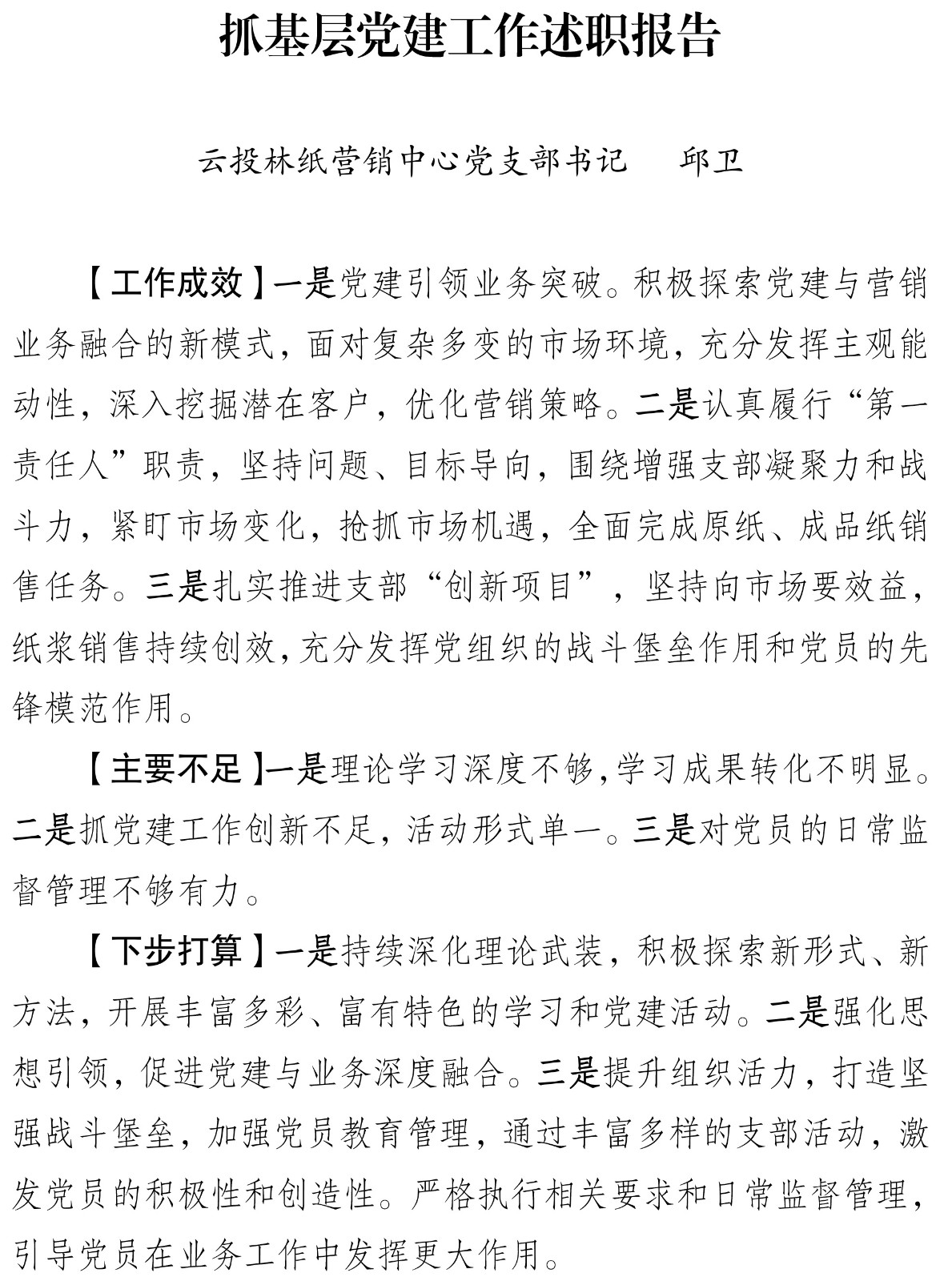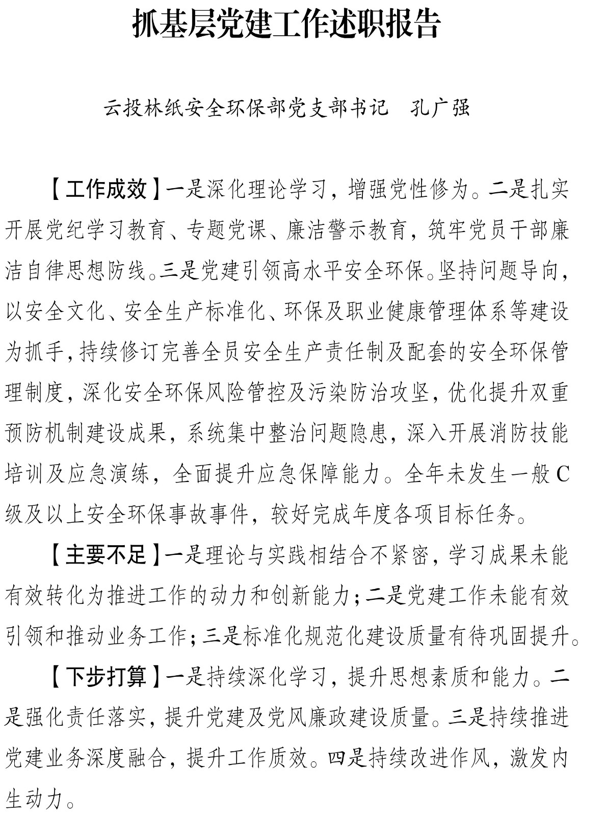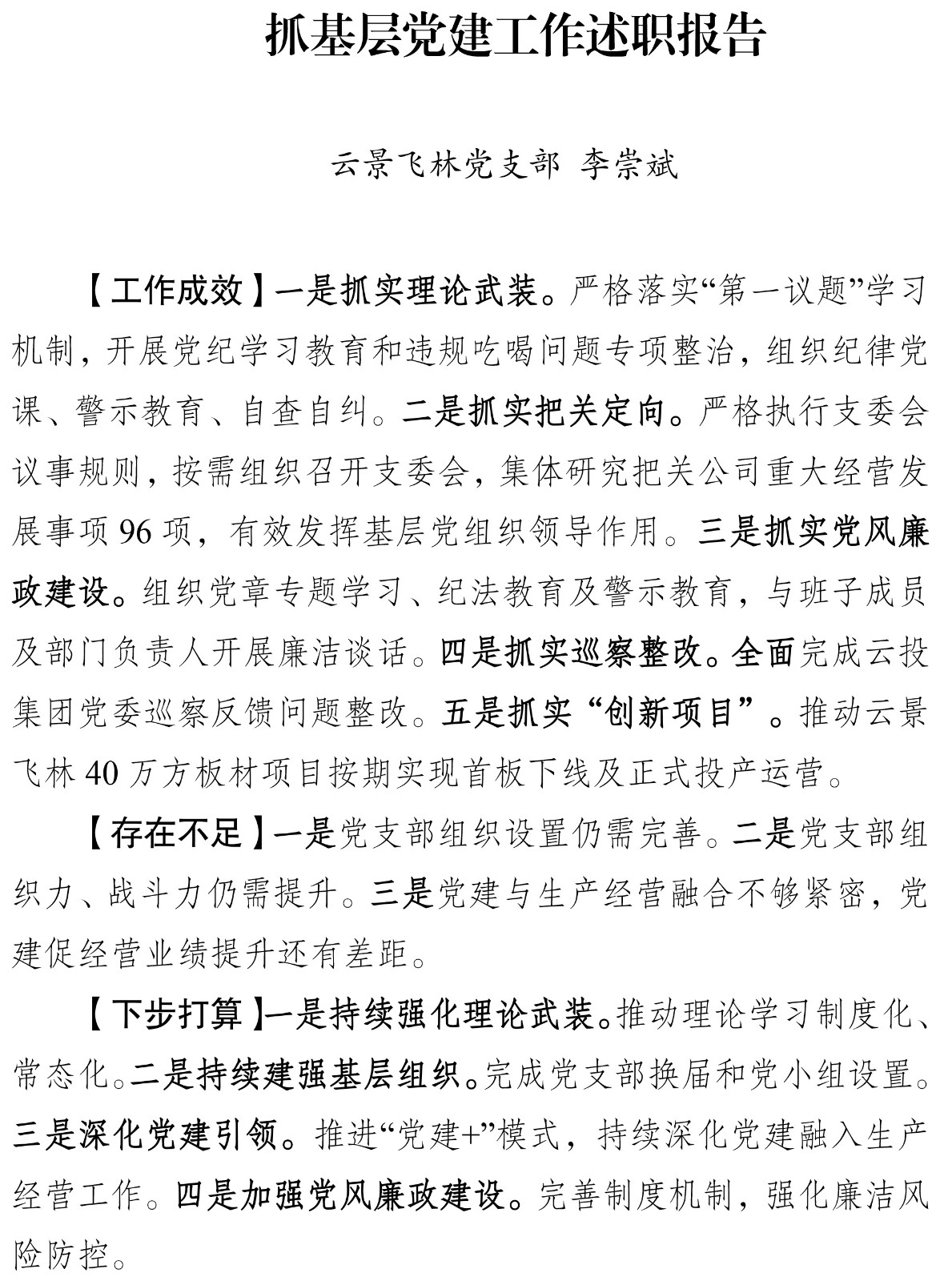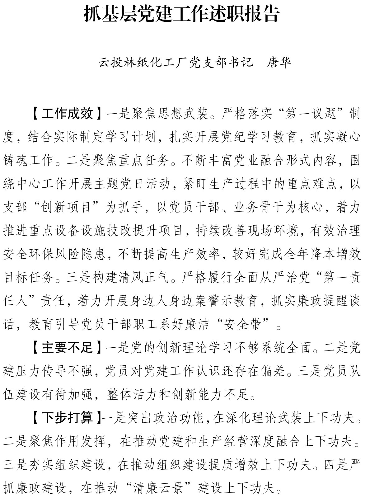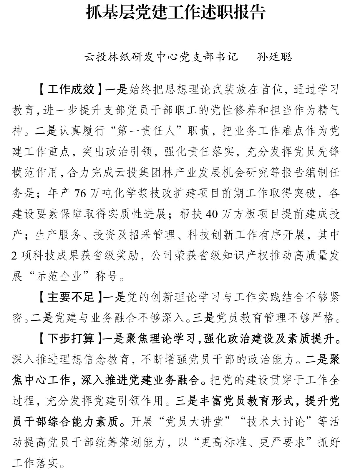 云投林紙黨支部書(shū)記抓基層黨建工作述職報(bào)告匯編